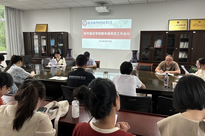 本网讯(城市建设学院 韩润芝)为做好期末相关工作,加强期末学生安全教育,确保本学期学生工作顺利完成,6月19日,城市建设学院在知行楼319会议室召开了期末辅导员工作会议。会议由城市建设学院党总支副书记叶高洁主持,学院党总支书记张宗江和全体辅导员参加了会议。