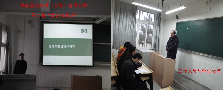 3月2日下午,华润雪花啤酒公司人力资源部胡枫林经理一行来我院开办“华润雪花班”,院纪委朱德明书记、院长助理丁守宝与华润雪花啤酒(安徽)有限公司领导共同研讨了校企合作的有关事宜。我院机电工程系和管理工程系学生勇跃报名,两系参加报名的学生达125人,经面试,共有40名学生成为了“华润雪花班”学员。