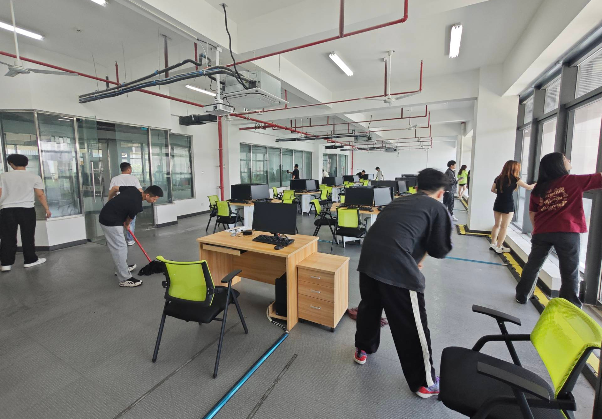 本网讯(城市建设学院 汪菊)为了营造整洁、有序的实训环境,进一步提升教学质量和学生学习体验,7月1日上午,城市建设学院建筑工程党支部党员与入党积极分子积极响应号召,在产教融合大楼四楼进行了一次实训室打扫活动