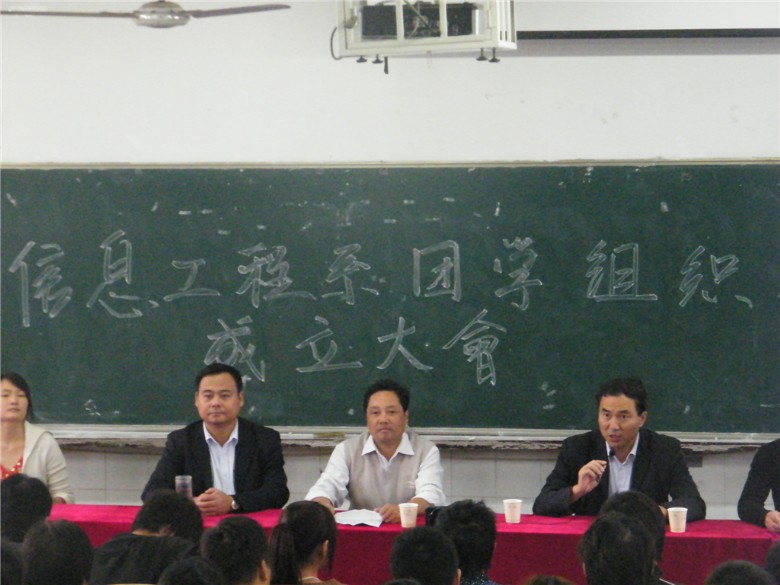 10月19日下午,信息工程系在1#111隆重举行第四届团学组织成立大会,大会由系办主任王文堂主持,系党总支书记梁继会、系主任黄存东、辅导员杨庆颖、周立卓、系学生会主席邹宇、系团总支副书记王迪等出席了大会,系团学组织成员及各班班委参加了大会。