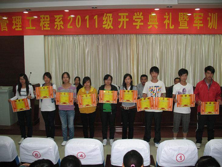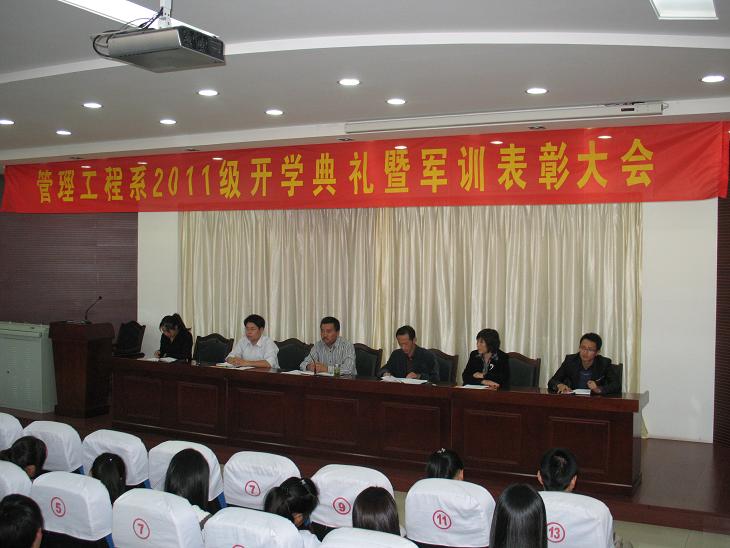 2011年9月21日下午,管理工程系在图书馆报告厅组织召开了2011级开学典礼暨军训表彰大会。管理工程系党总支书记杜先扬、副主任刘圣春、主任辅导员张圣霞、团总支书记杨力、辅导员丁辉、付玉梅、部分班主任和新生参加此次会议。会议由杜先扬主持。
