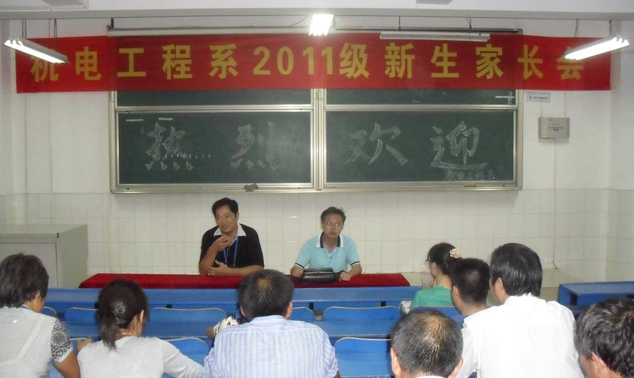 9月3日晚8点,机电工程系组织召开了2011级新生家长会,出席会议的有新生家长、机电工程系党总支书记孙良平、系副主任李翔、院就业办副主任柳春、团总支书记及辅导员、班主任。
