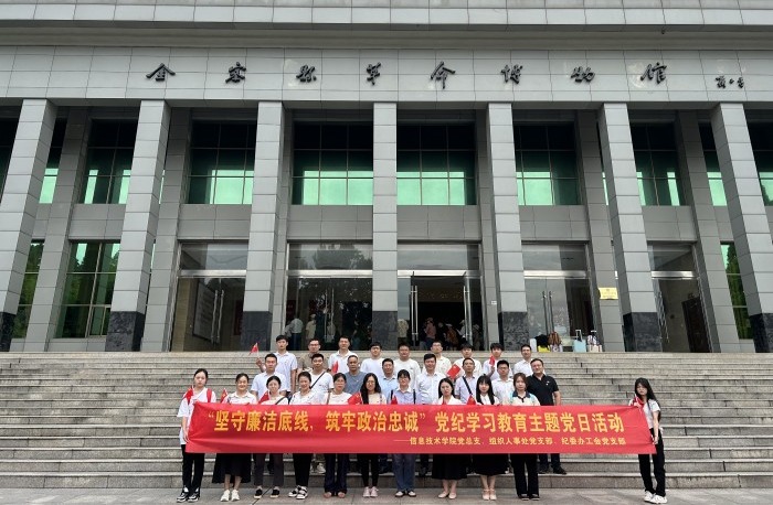 本网讯(信息技术学院 马士君)为扎实推进党纪学习教育,进一步引导广大党员干部在学习教育、观展感悟中知敬畏、存戒惧、守底线,增强拒腐防变意识,7月9日,信息技术学院党总支组织全体党员赴金寨革命博物馆、红十一军第三十二师成立旧址开展“坚守廉洁底线,筑牢政治忠诚”党纪学习教育主题党日活动,重温党的光辉历史,接受精神洗礼,筑牢廉洁自律防线。校党委书记余嗣元同志作为普通党员参加了本次主题党日活动。