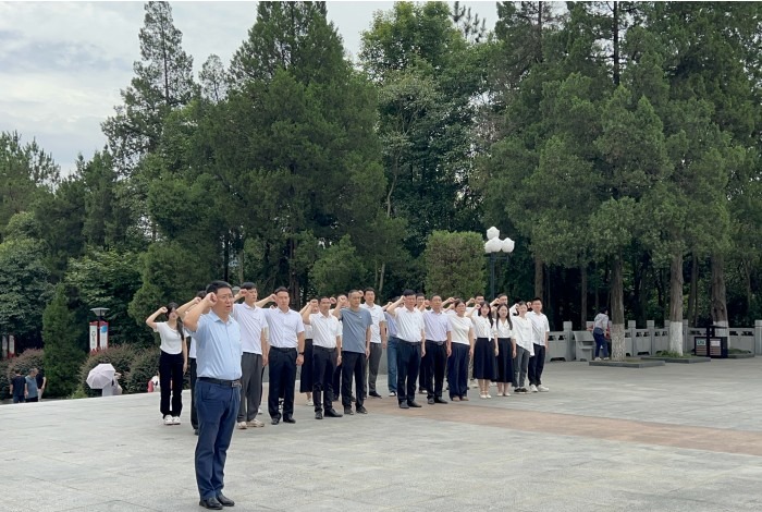 随后,全体党员怀着崇敬的心情步入金寨县革命烈士陵园,向纪念碑敬献花篮,表达对革命先烈的深切缅怀和无限敬仰。伫立在庄严肃穆的烈士纪念碑前,在党员王胜的领誓下,全体党员面向鲜红的中国共产党党旗,庄严地举起右拳,重温入党誓词,铮铮誓言,彰显了各位党员同志的热血与忠诚。