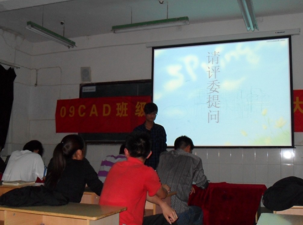 为更好地帮助广大同学树立正确的人生观、学习观和成才观,确立正确的奋斗目标,同时提高同学们的创业、择业和就业能力。5月26日下午,由机电工程系09CAD班团支部主办的班级职业规划设计大赛活动在一栋教学楼304教室举行。