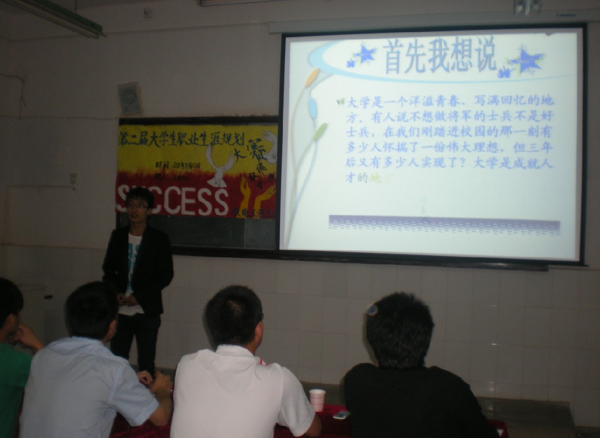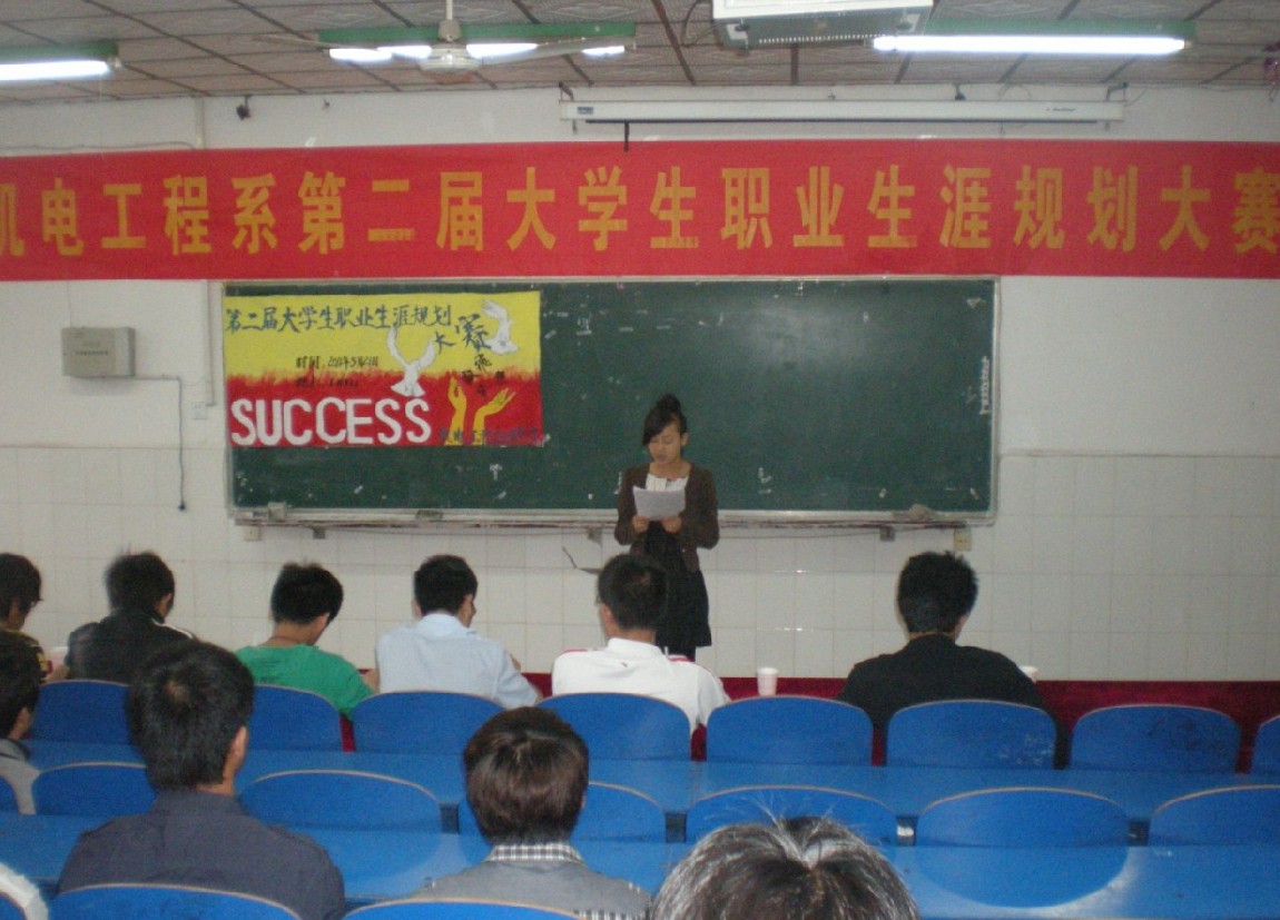 5月21日下午两点,由机电工程系团总支主办的第二届大学生职业生涯规划大赛在一栋教学楼111教室隆重举行。