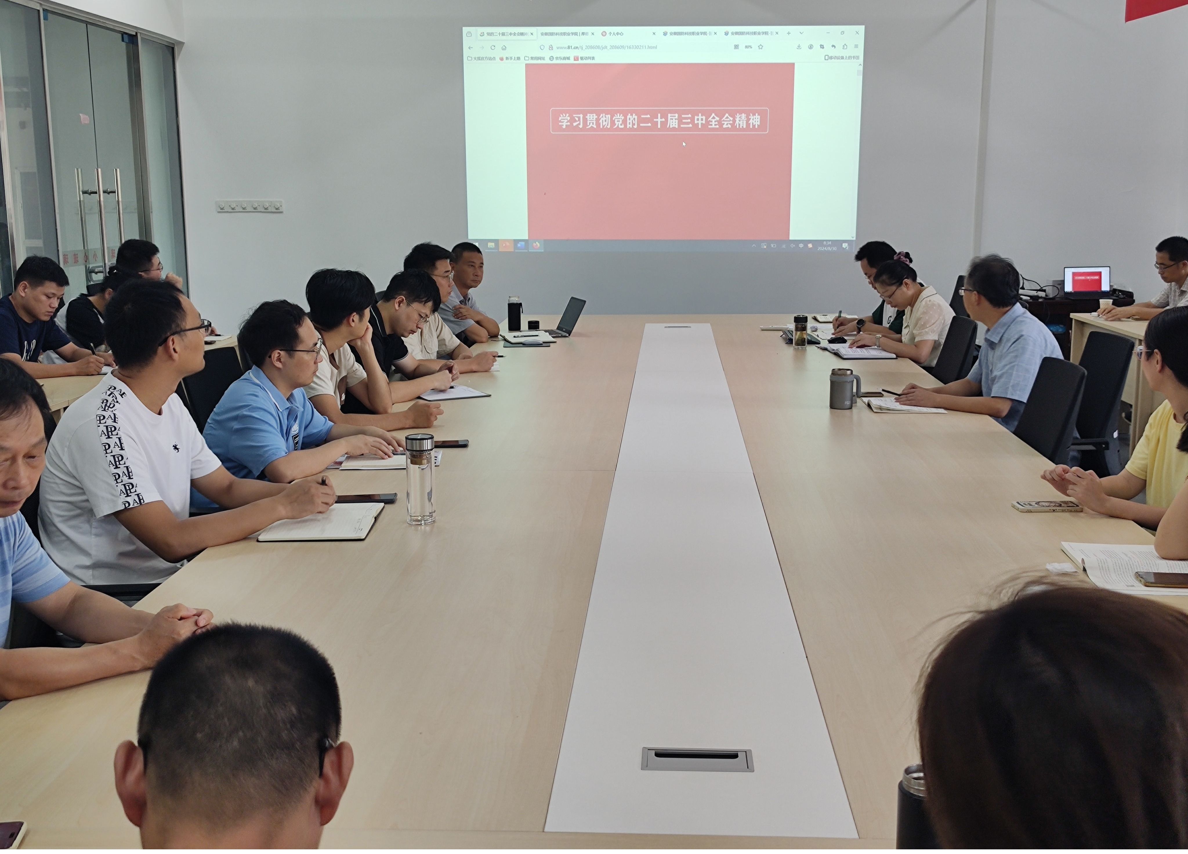 本网讯(电气技术学院 卢明瑞)8月30日上午,电气技术学院在产教融合中心B306会议室召开深入学习贯彻党的二十届三中全会精神专题会,学院全体教职工参与学习。
