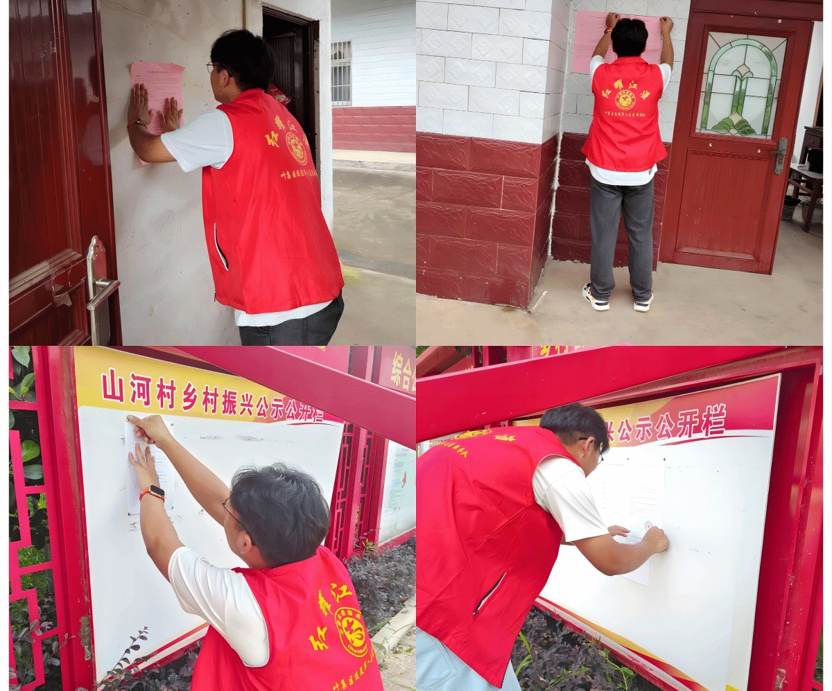 走家串户,宣传政策。为帮助当地居民更好了解国家最新的政策和通知,同时也通过实地走访更深入地了解他们的需求和困难,为他们提供更精准的帮助。社会实践期间,卢雁舞同学开展实地走访、一家一户地宣传医保、防溺水等各项政策、通知,并在将各类文件粘贴到“山河村乡村振兴公示公开栏”,确保第一时间通知到家家户户,既提高政策的执行效率和群众的配合度,提升了群众的幸福感和安全感,又让大家体会到了国家对基层人民群众的关心和关爱。