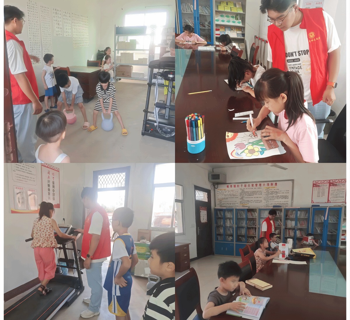 温暖童心,传递关爱。为丰富当地留守儿童的暑期生活,为山河村文化建设添彩,展现社区的活力与温暖。卢雁舞同学在当地村委会的支持下,先后开展了“快乐童读”图书阅览活动、“运动无限,快乐健身”活动、“夏日小课堂”儿童绘画活动,通过筹集图书,邀请家长们分享故事,组织绘画与写作比赛,带领留守儿童们开展晨跑、练太极、练瑜伽、篮球比赛和亲子趣味运动会等形式,既丰富了孩子们的精神世界,增强了社区凝聚力,又激发了大家的运动热情,倡导了健康生活方式。卢雁舞同学用实际行动证明,即使在资源有限的乡村,也能通过阅读、绘画和运动,激发孩子们的想象力和创造力,照亮他们的童年。他计划将活动扩展到更多村庄,成为梦想的传播者,用学习搭建通往未来的桥梁。