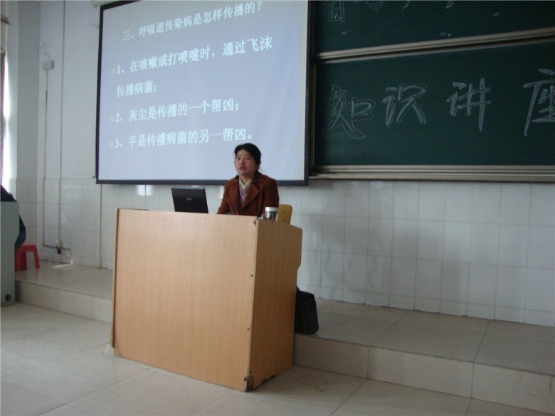 春季是各种传染病多发的季节,为增强学生疾病预防意识、掌握常见传染病的防治常识,3月30日下午,信息工程系团总支学生会特邀院卫生科沈力、雷春荣两位老师在2#105作了一场春季预防传染病知识讲座。