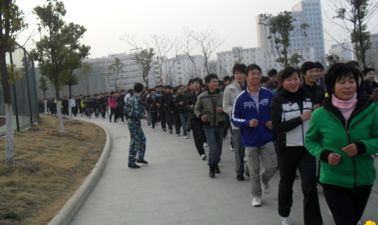 为大力营造良好的校园体育文化氛围,展现当代大学生昂扬向上的精神面貌,积极响应“每天锻炼一小时,健康工作50年,幸福生活一辈子”的倡议,2011年3月中旬,机电工程系团总支组织全系学生开展了“健身我先行”人人晨训活动。