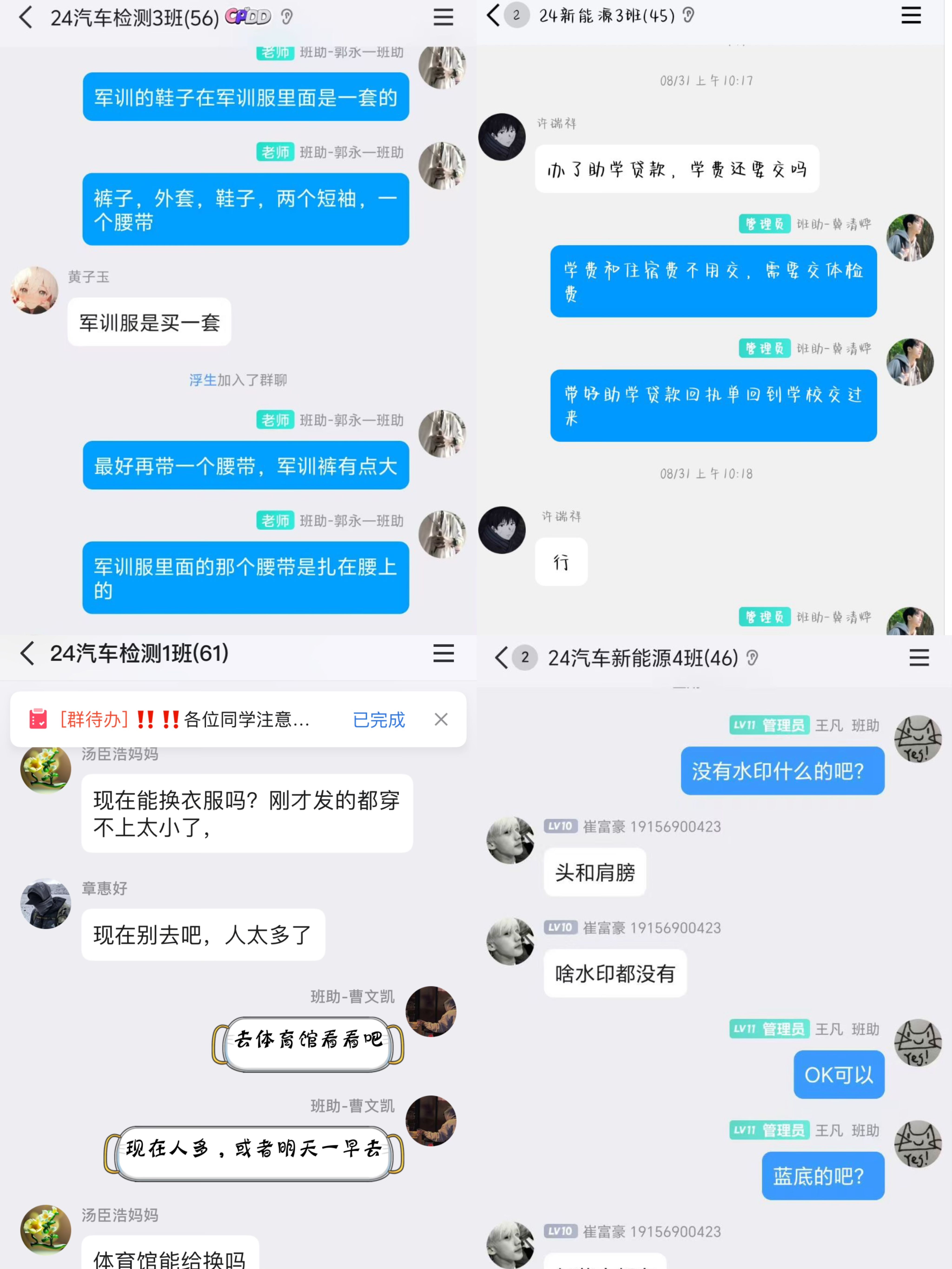 多措并举,护航新生。为了让新生们能够顺利报到,汽车技术学院提前开通迎新QQ群、咨询电话等多种渠道,及时发布报到指南。从入学档案转递到报到流程,从学费缴纳到吃穿住行,每一项信息都清晰明了。此外,学院为各新生班级配备高年级学姐学长作为班助通过多种方式与每位新同学建立联系,及时传达学校的最新消息,并为新生答疑解惑。