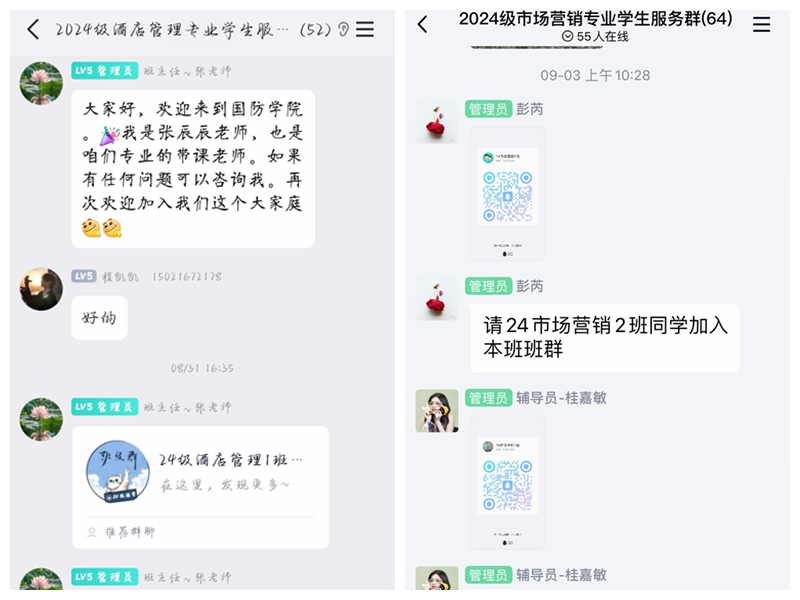 搭建平台,精准沟通。在信息沟通方面,学院搭建了新生沟通交流平台,组织各新生班级辅导员与全体新生进行一对一的联系,预先创建专业群和班级群,及时发布有关信息,以便让新生能及时了解报到流程,进行答疑解惑,让新生和家长们真切感受到学院的关怀和温暖。