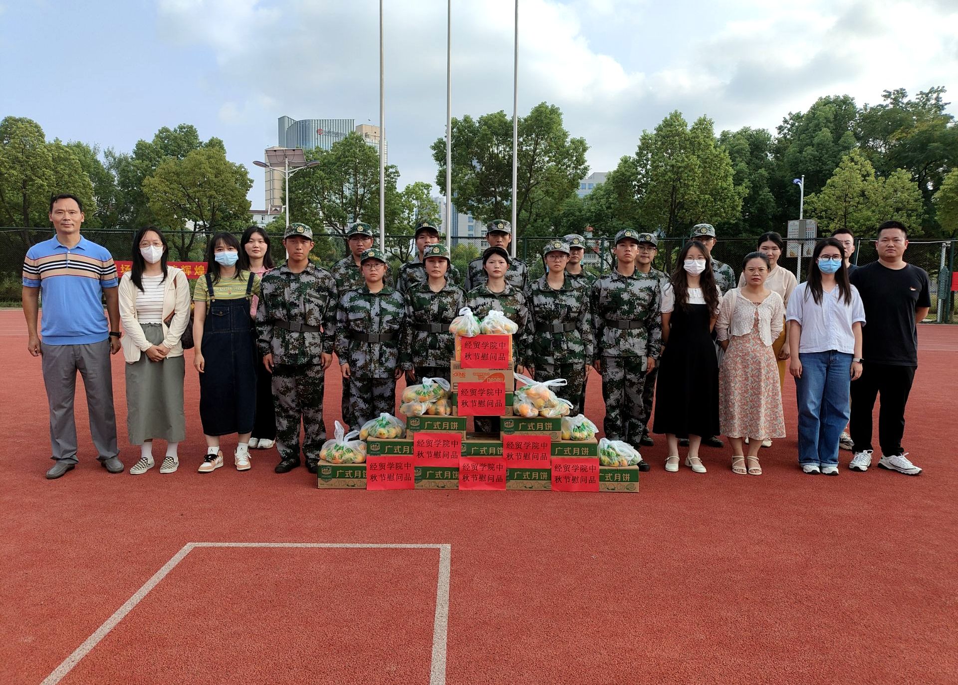 本网讯(经贸管理学院 陈玮)9月14日下午,中秋佳节即将到来之际,经贸管理学院党总支书记刘峰、团总支书记陈玮及全体2024级新生班级辅导员深入军训训练场地看望正在军训的五百多名新生,给学生们送去温暖、给予慰问,提前致以节日的问候和祝福。