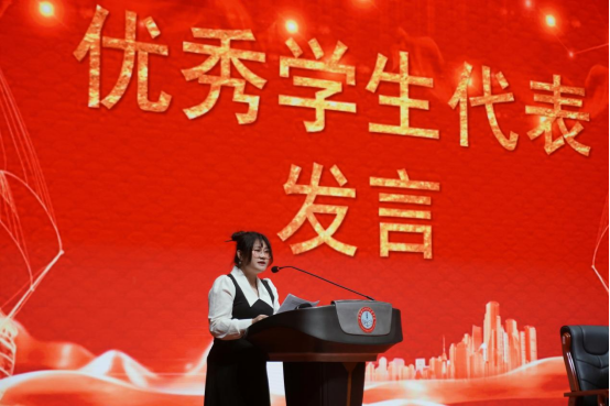 随后,来自22市场营销2班的优秀学生代表查玲玲以温婉动人的语调,分享了自己在大学期间的学习经验和成长历程。她的发言如涓涓细流,汇入新生们的心田,鼓励新生们积极参与学院活动,拓宽视野,提升自我。