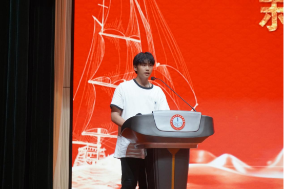来自24轨道交通3班的新生代表周奔同学则以铿锵有力的声音,表达了对大学生活的憧憬和梦想,他期待在学院的新的人生起点,秉持厚德强能励志笃行的校训,练就技能报国的真本领,主动接过一代代经贸人奋力拼搏的接力棒,在矢志奋斗中谱写无悔青春。他的发言激励着广大新生勇敢追梦,不负韶华。