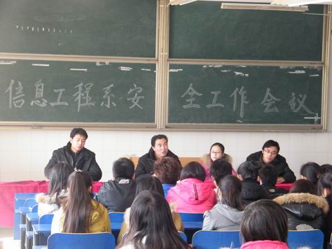 3月10日下午,信息工程系在2教学楼105教室召开学生安全工作会议,会议由团总支书记张伟业主持,主任辅导员王文堂,辅导员刘严、杨旄袤、余桂刚及该系全体学生干部参加了会议。