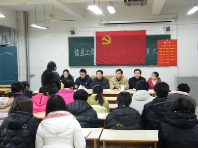 12月15日,信息工程系在2#308召开发展学生党员大会,会议由学生党支部书记王文堂老师主持,系党总支书记梁继会、组织委员黄存东、宣传委员张伟业和职工党员刘严、戴泽淼、芮素文、杨旄袤等老师参加了会议。