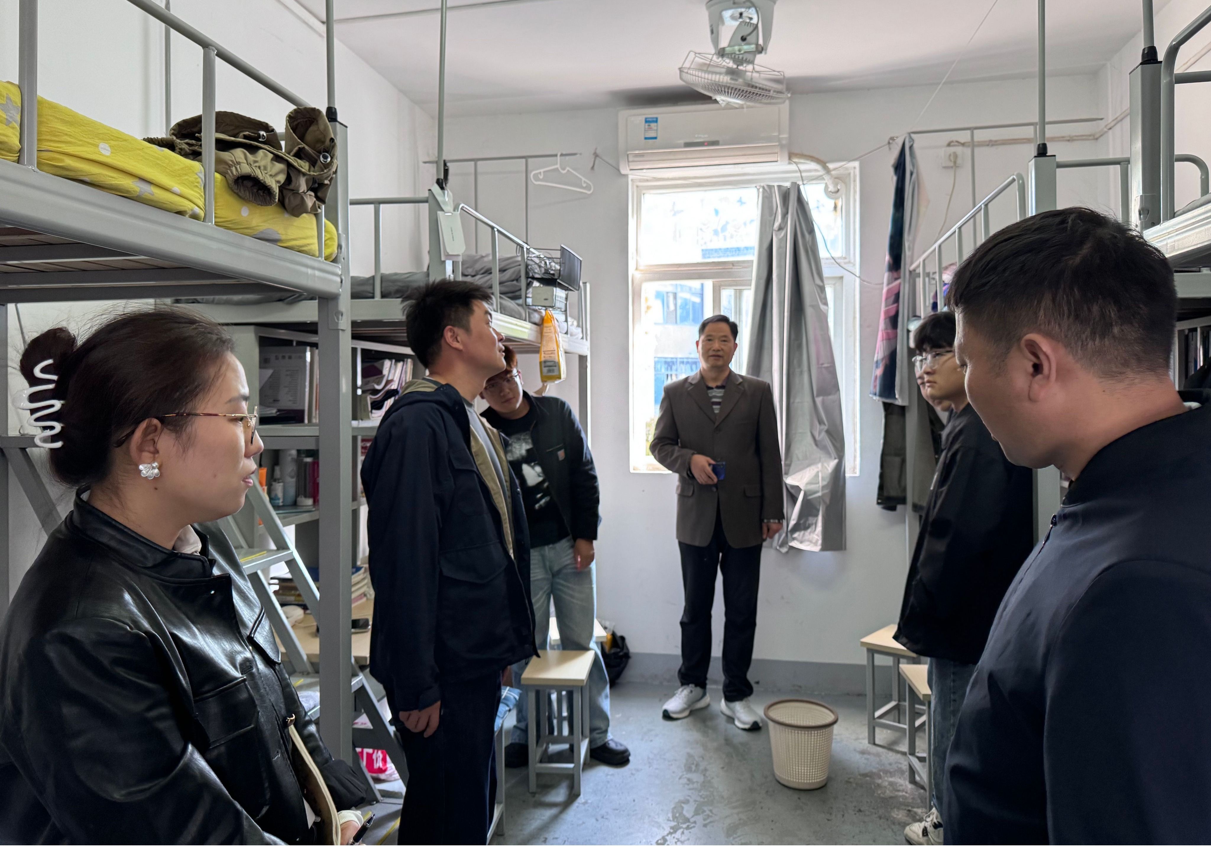 在宿舍安全检查环节,学院领导老师们对学生宿舍的卫生状况、物品放置以及用电安全等关键方面进行了逐一排查,他们反复向同学们强调了安全用电和防火防灾的重要性,并对检查过程中发现的卫生问题及安全隐患立即提出了整改意见,以确保学生宿舍的环境安全得到有效保障。