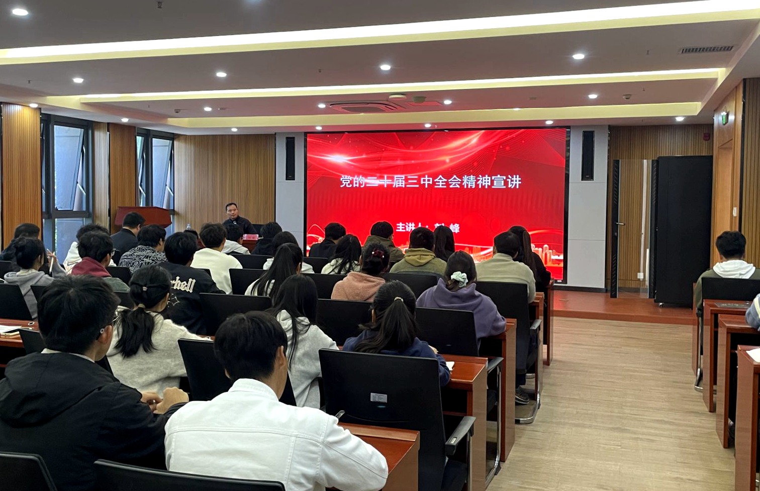 本网讯(经贸管理学院 陈玮)根据《经贸管理学院党总支学习宣传贯彻党的二十届三中全会精神计划》安排,10月23日下午,学院党总支书记刘峰深入学生开展党的二十届三中全会精神宣讲,学院辅导员代表、团总支学生会和各班级主要学生干部参加宣讲会。