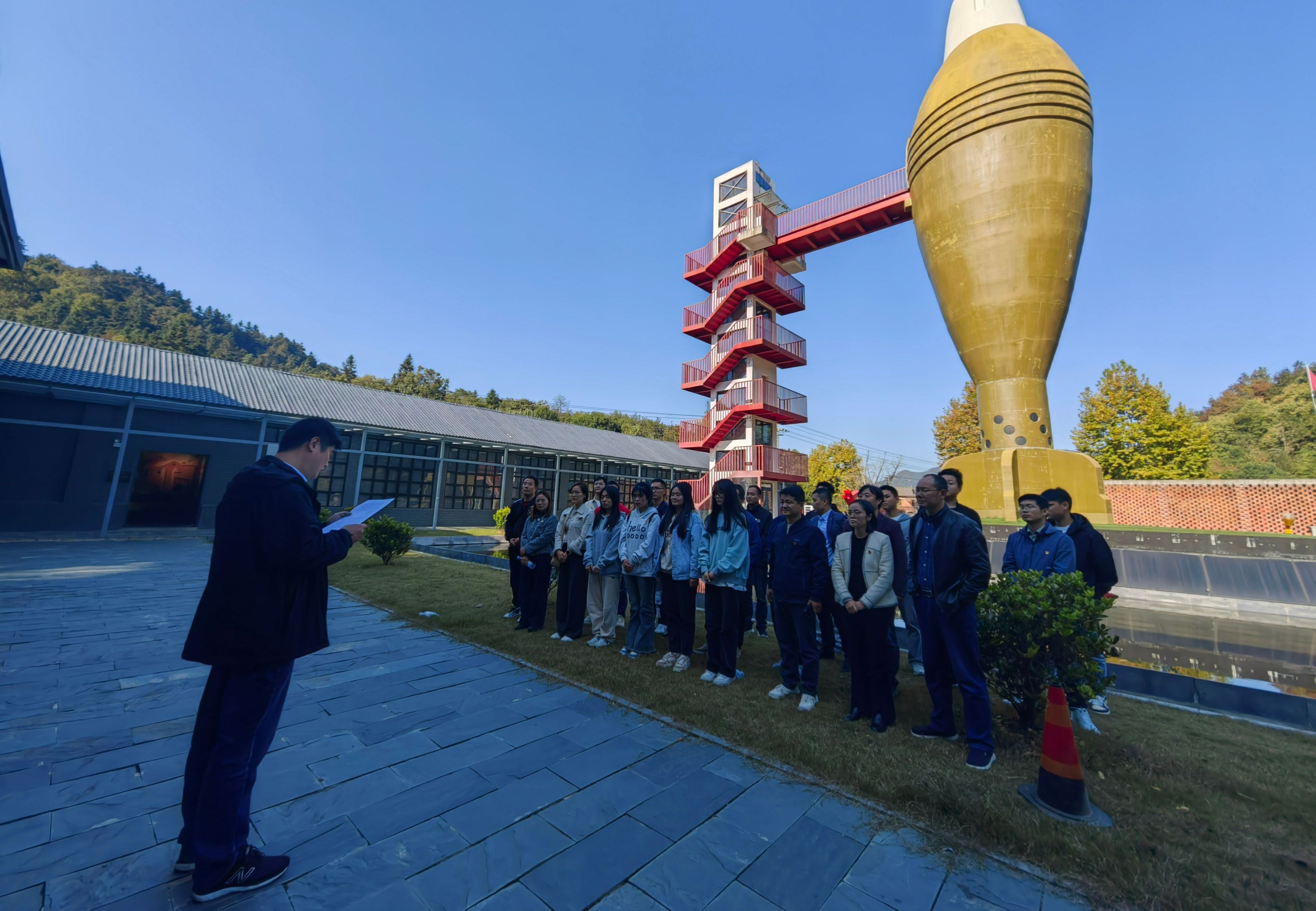 在安徽省三线军工博物馆进行参观学习时,同志们凝心聚神仔细观察历经岁月洗礼的一件件展品,感受着安徽军工人在那段艰苦岁月中的奋斗精神。馆内参观结束后,安徽博微长安电子有限公司技能大师王勇为大家讲述了身为两代军工人献身国防军工事业中的奋斗故事,通过参观学习大家都更加深刻理解了三线精神的丰富内涵。