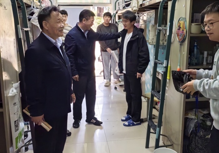 10月30日下午,校纪委书记丁守宝带领学院班子成员和全体辅导员深入学生宿舍,检查宿舍安全、卫生等情况,了解学生动态,并对学院学生管理工作提出要求。丁守宝强调,学生宿舍作为学生学习和生活的重要场所,其管理质量直接关系到学生的身心健康和校园安全稳定,辅导员要经常深入宿舍,督促学生做好宿舍卫生,排查安全隐患,营造一个安全、整洁和稳定的宿舍环境。