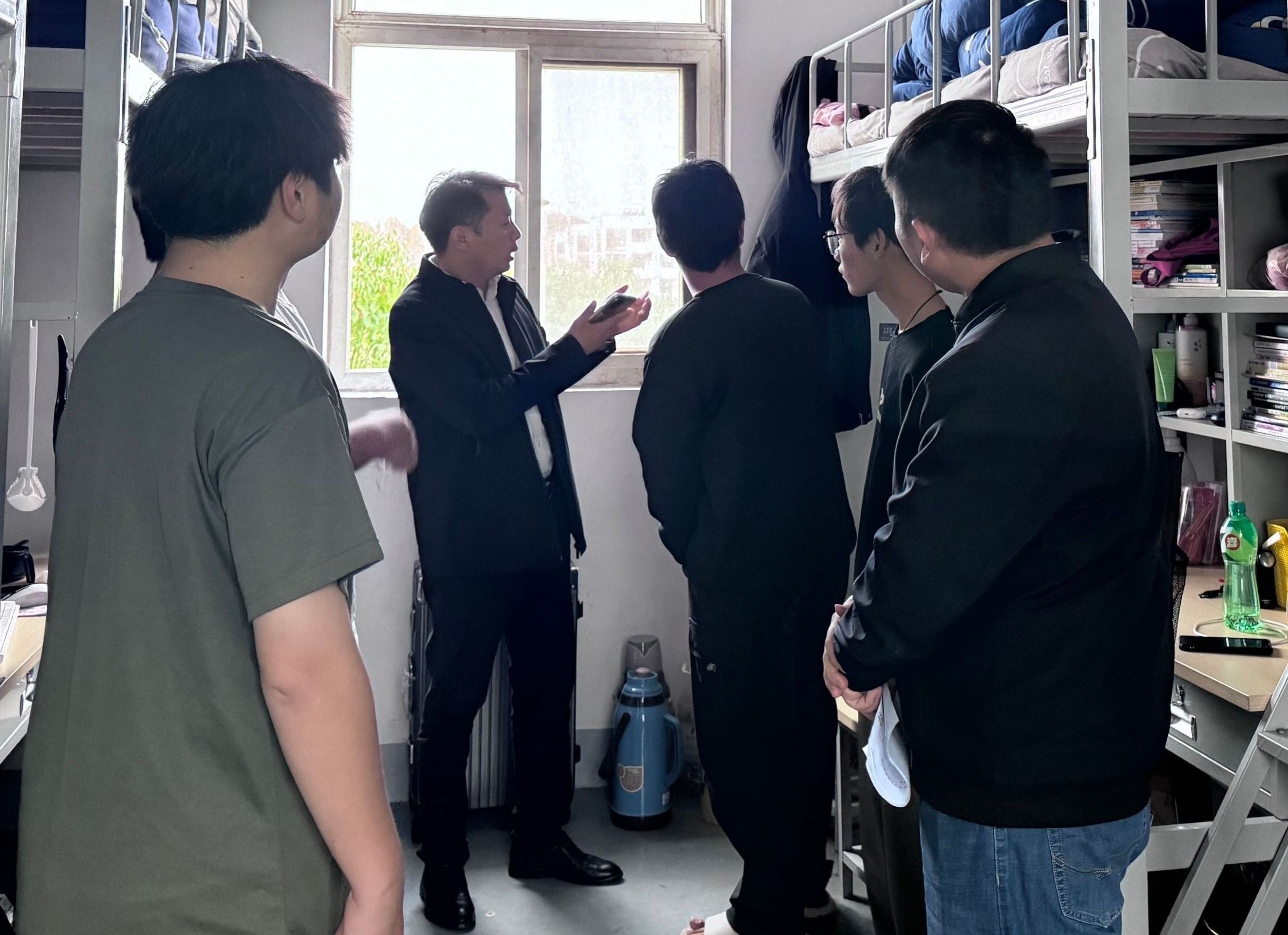 下午四点,领导老师准时到达1号宿舍楼楼下集合,集中统一对学生宿舍安全、卫生、设施等方面进行了全面检查,并重点抽查了各班级学生干部宿舍、优秀班集体宿舍、学生党员宿舍。针对有关问题,学院领导要求学生进行现场整改,并一再叮嘱学生要养成良好的卫生习惯,保持宿舍通风透气,加强身体锻炼,防止流行性疾病发生;要强化个人安全意识,防微杜渐,力争把宿舍建设成一个“安全、文明、舒适、和谐 ”的学习和生活场所。