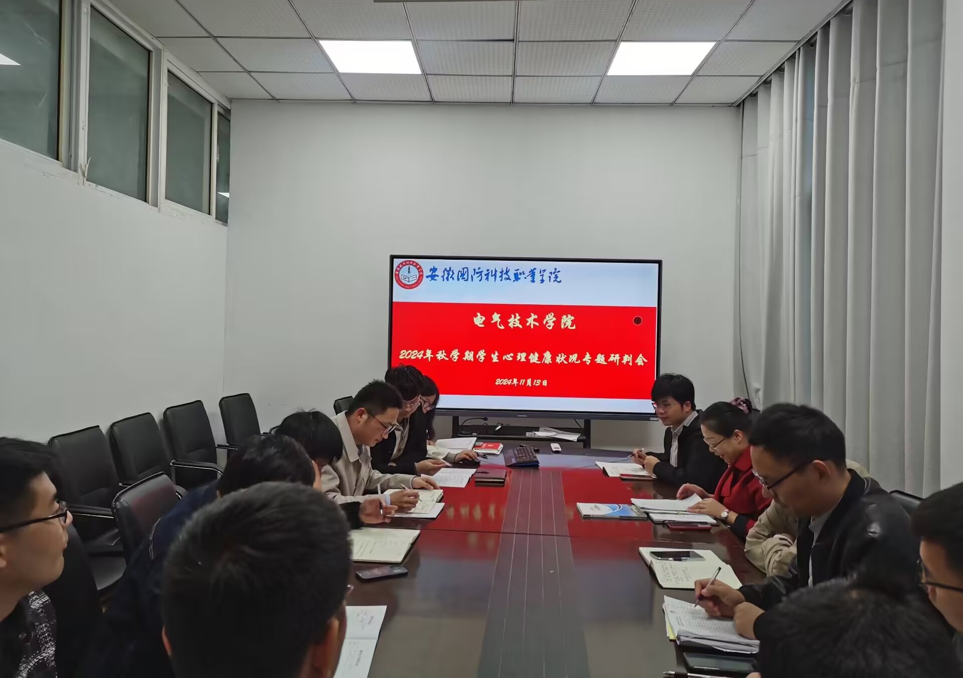 本网讯(电气技术学院 王星星)为持续推进学院心理健康教育工作,指导2024年秋学期大学生心理健康测评及访谈工作,11月13日下午,电气技术学院召开学生心理健康状况专题研判会。学院党总支副书记张丽、全体24级辅导员参加此次会议。