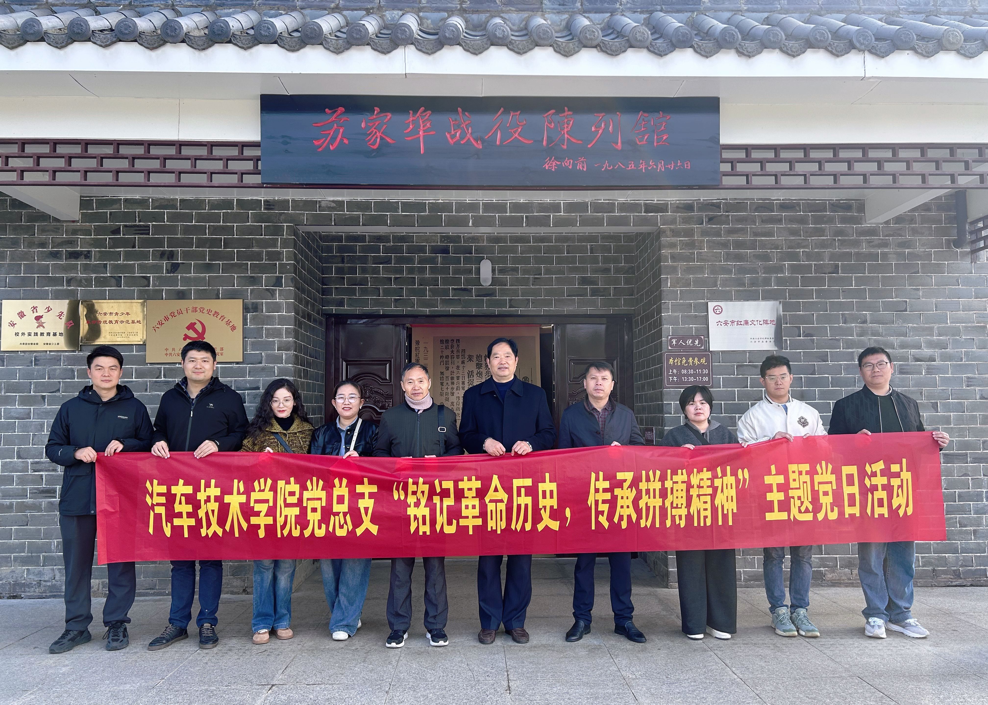 本网讯(汽车技术学院 任培培)为深入学习贯彻习近平新时代中国特色社会主义思想和党的二十届三中全会精神,强化爱国主义教育,传承红色基因和奋斗精神,增强汽车技术学院党总支的凝聚力和战斗力,11月23日上午,汽车技术学院党总支组织党员前往苏家埠战役陈列馆、淠史杭工程展览馆,开展“铭记革命历史,传承拼搏精神”主题党日活动。