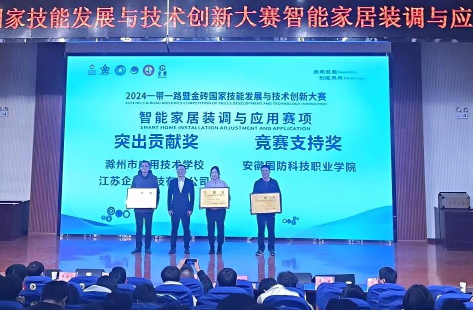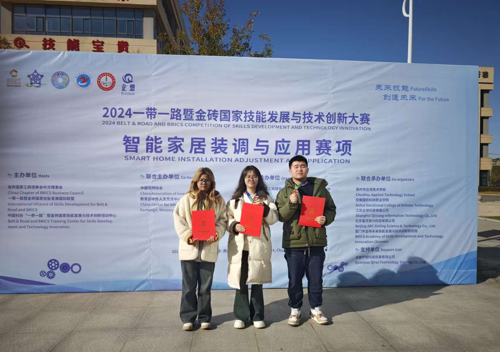 本网讯(电气技术学院 孔军)11月28日,2024一带一路暨金砖国家技能发展与技术创新大赛智能家居装调与应用赛项国内决赛在滁州应用技术学校举办,来自全国各地39支队伍共117名参赛者齐聚一堂,展现了各自卓越的技术才能和创新精神。由电气技术学院教师孔军、卢明瑞指导的刘嘉硕、钱莹、邓玉清学生团队荣获决赛三等奖,万象城体育awcsport荣获竞赛支持奖。