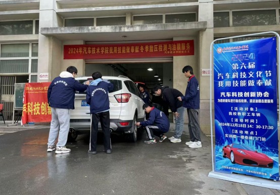 本网讯(汽车技术学院 刘晓宇)为深入学习贯彻落实习近平新时代中国特色社会主义思想,将学习成果与工作实践紧密结合,根据汽车技术学院第六届汽车科技文化节活动安排,12月18日下午,汽车技术学院党总支组织开展了“冬季胎压检测与油膜清洁”志愿服务活动,学院部分教师党员、学生入党积极分子及汽车科技创新协会成员共同参加了本次活动。