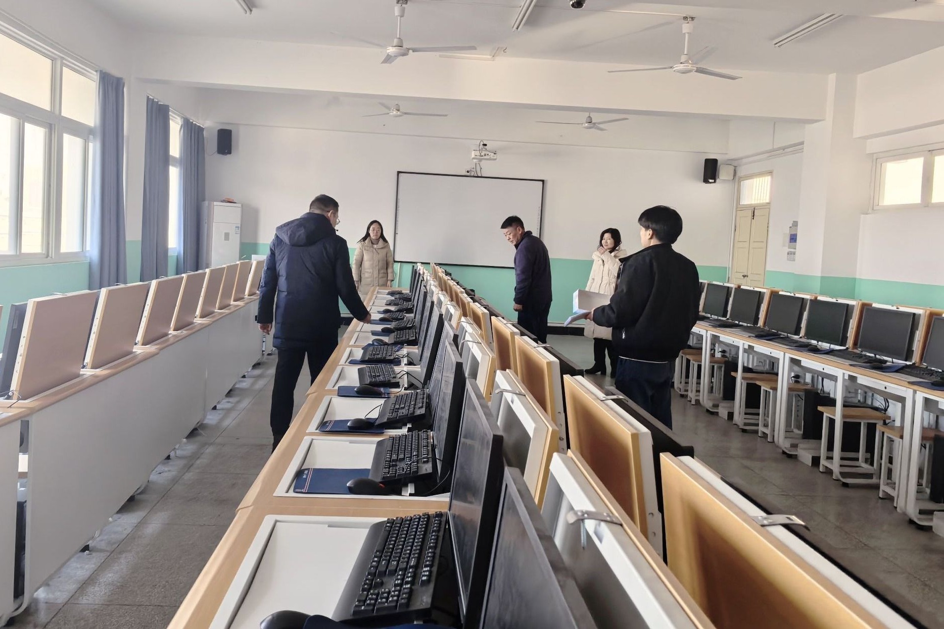 检查组深入学院的各个实训室,对实训设备、消防设施、电气线路等方面进行了全面细致的检查,对存在的问题认真做好记录,并要求实训管理人员利用假期时间进行整改,确保设备下学期可以正常使用。张宗江对学院实训室管理提出两点要求:一是做好实训室电脑以及设备的维护工作;二是必须切断每个实训室的电源,关好门窗,做到安全无隐患。