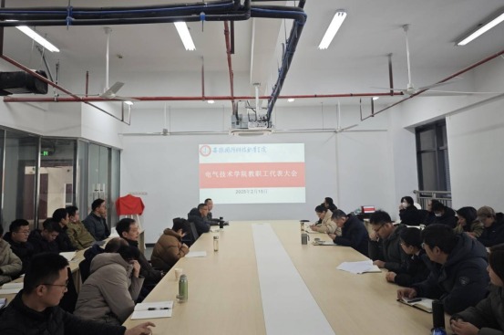 本网讯(电气技术学院 陈俊)为落实教职工主人翁地位,保障教职工行使民主权利、参与民主管理、进行民主监督,2月15日下午,电气技术学院教职工代表大会在产教融合中心301会议室顺利召开。学院全体教职工代表参加了此次会议,会议由电气技术学院院长李翔主持召开。