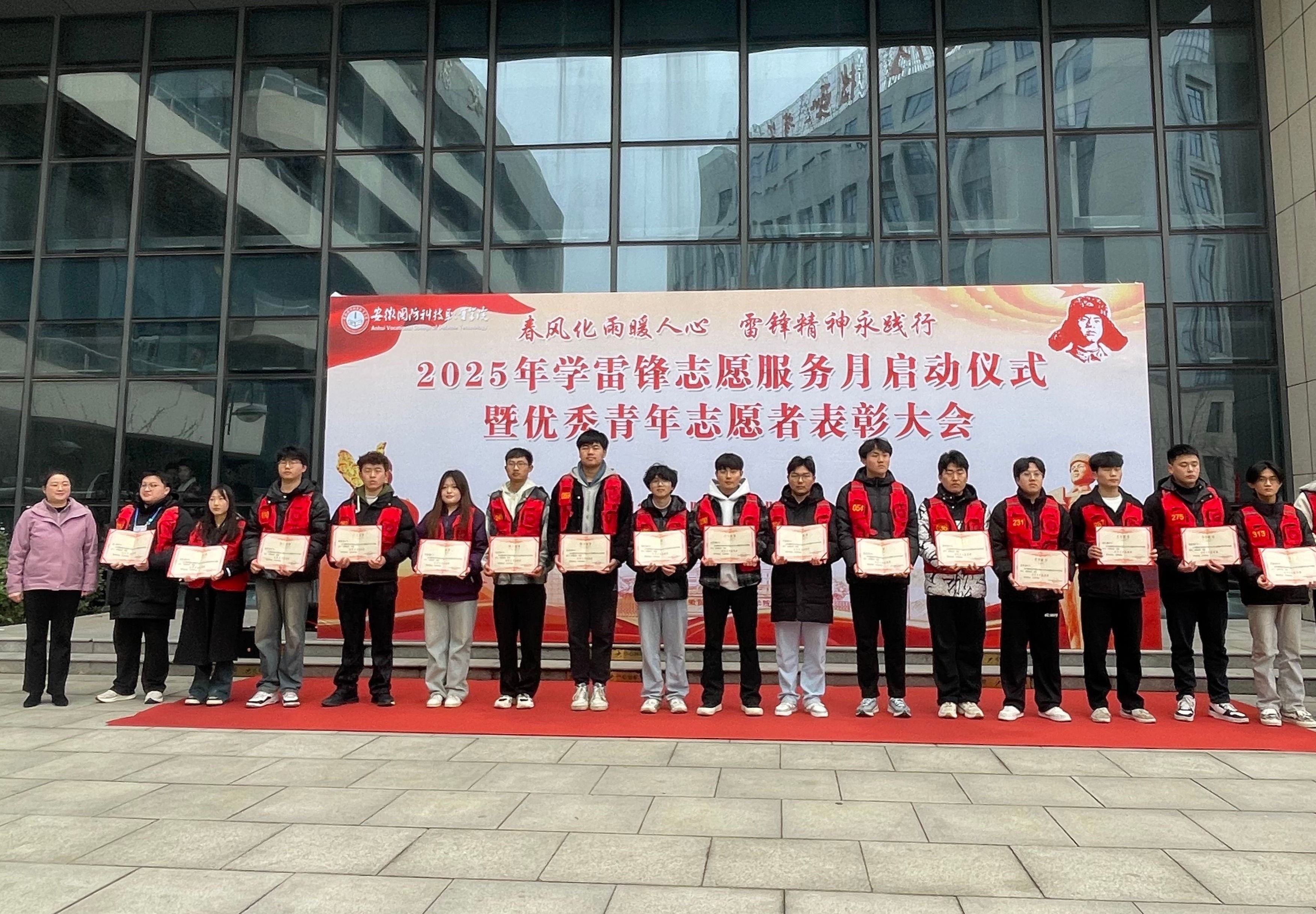 仪式上,陈思为受表彰的22名优秀青年志愿者颁发了证书;张凤总结了2024年学校志愿服务工作,详细解读了2025年学校《关于开展春风化雨暖人心 雷锋精神永践行学雷锋志愿服务月系列活动的通知》;青年志愿者代表么晴晴同学宣读了《弘扬雷锋精神 绽放青春力量——致全体国防学子的倡议书》;志愿者李梦想同学代表全校学子进行了庄严宣誓,号召全体团员青年持续弘扬雷锋精神,以实际行动书写新时代的雷锋故事。