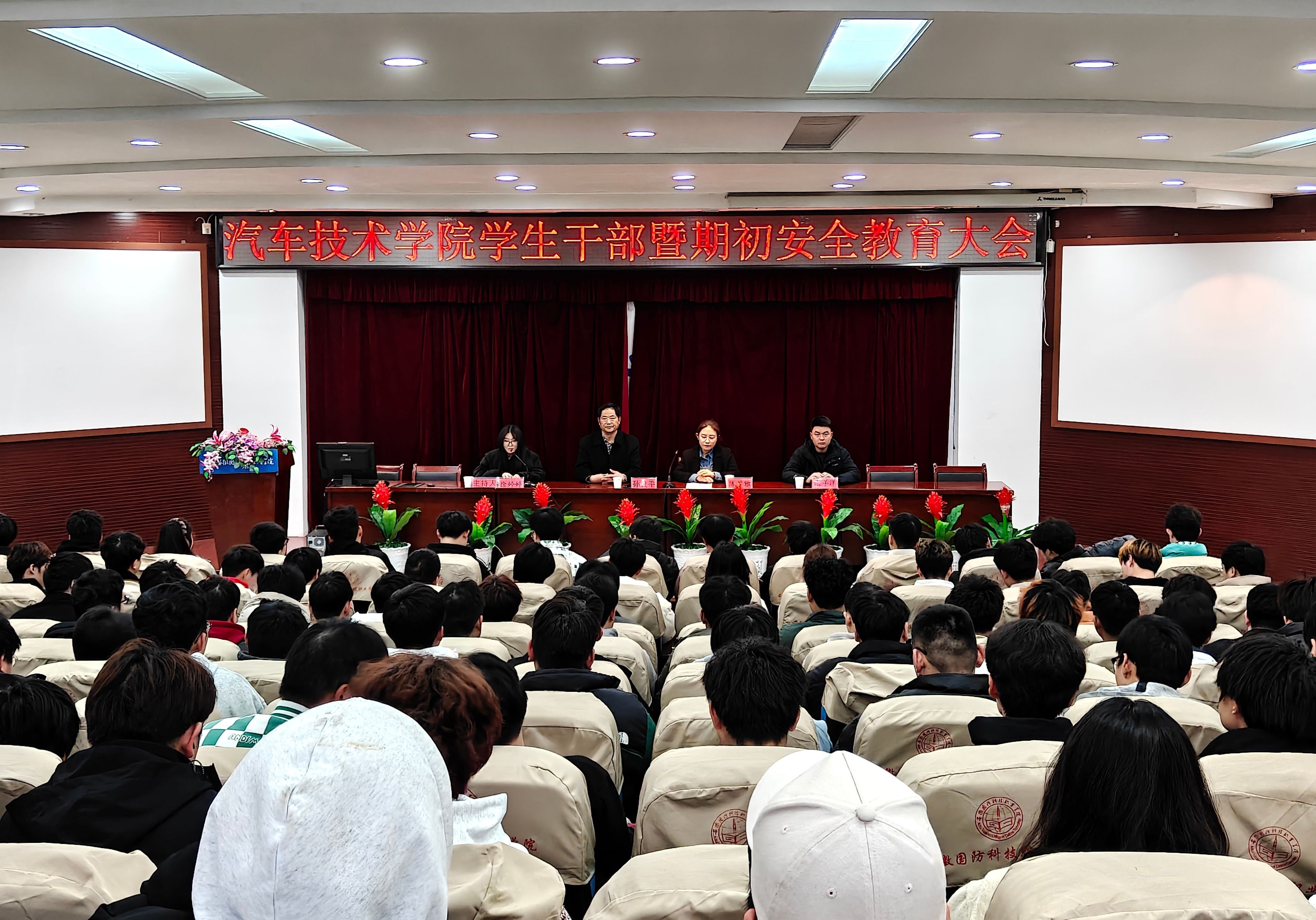 本网讯(汽车技术学院 徐婷婷)为扎实开展本学期学生工作,不断提升学生干部的综合素质,强化安全意识和责任意识,3月12日下午,汽车技术学院在图书馆报告厅召开学生干部暨期初安全教育大会,学院党总支书记孙良平、副书记陈梦雅、学院辅导员及在校学生干部参会,大会由学院团总支书记徐婷婷主持。