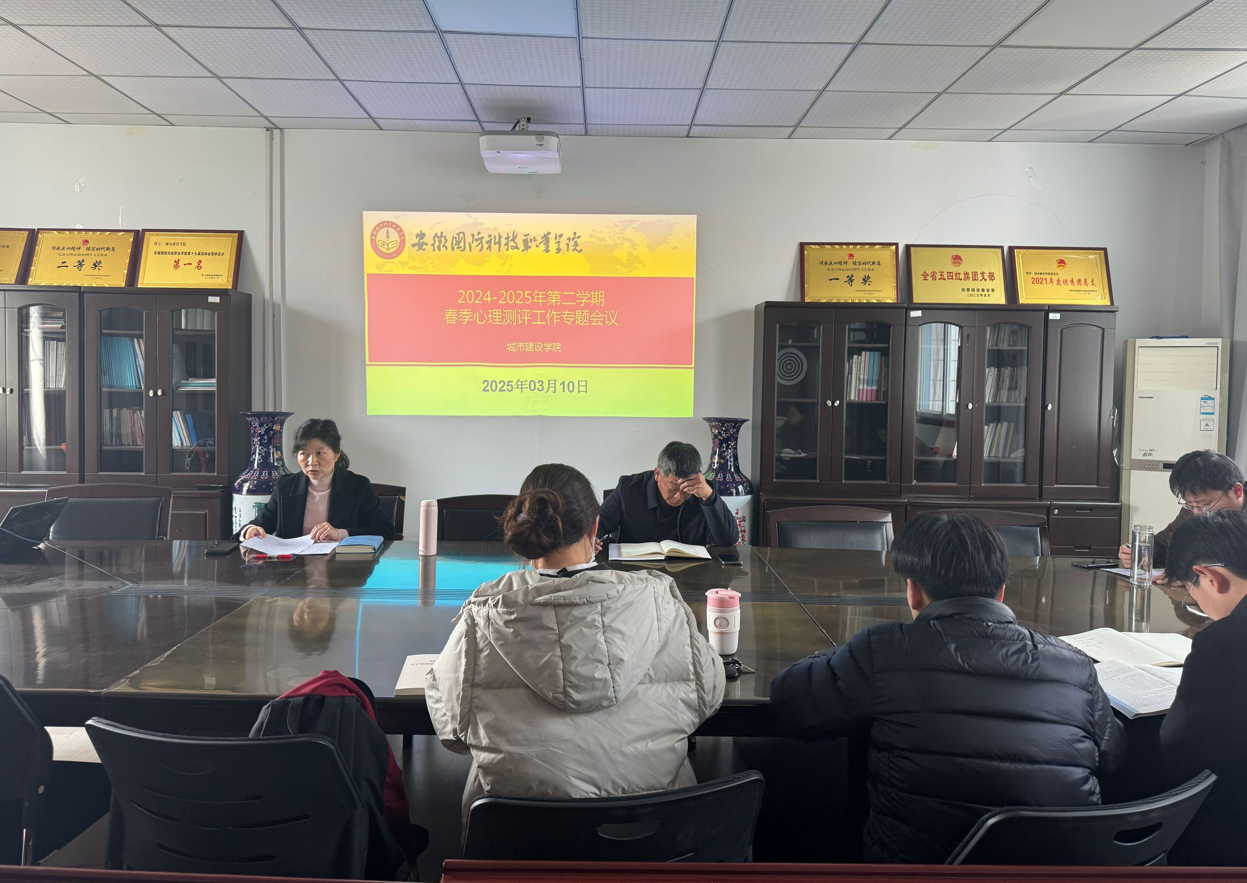 城市建设学院于3月12日召开了春季心理测评工作辅导员专题会议,会议传达了《关于开展2025年春学期大学生心理健康测评工作的通知》,布置了心理测评相关事项。学院党总支书记张宗江强调各辅导员思想上要高度重视,认真精心组织在校生心理测评工作,仔细梳理心理测评数据,充分认识到心理健康教育工作的重要性与紧迫性;会后各辅导员要认真召开主题班会,引导学生认真对待此次心理测评工作。