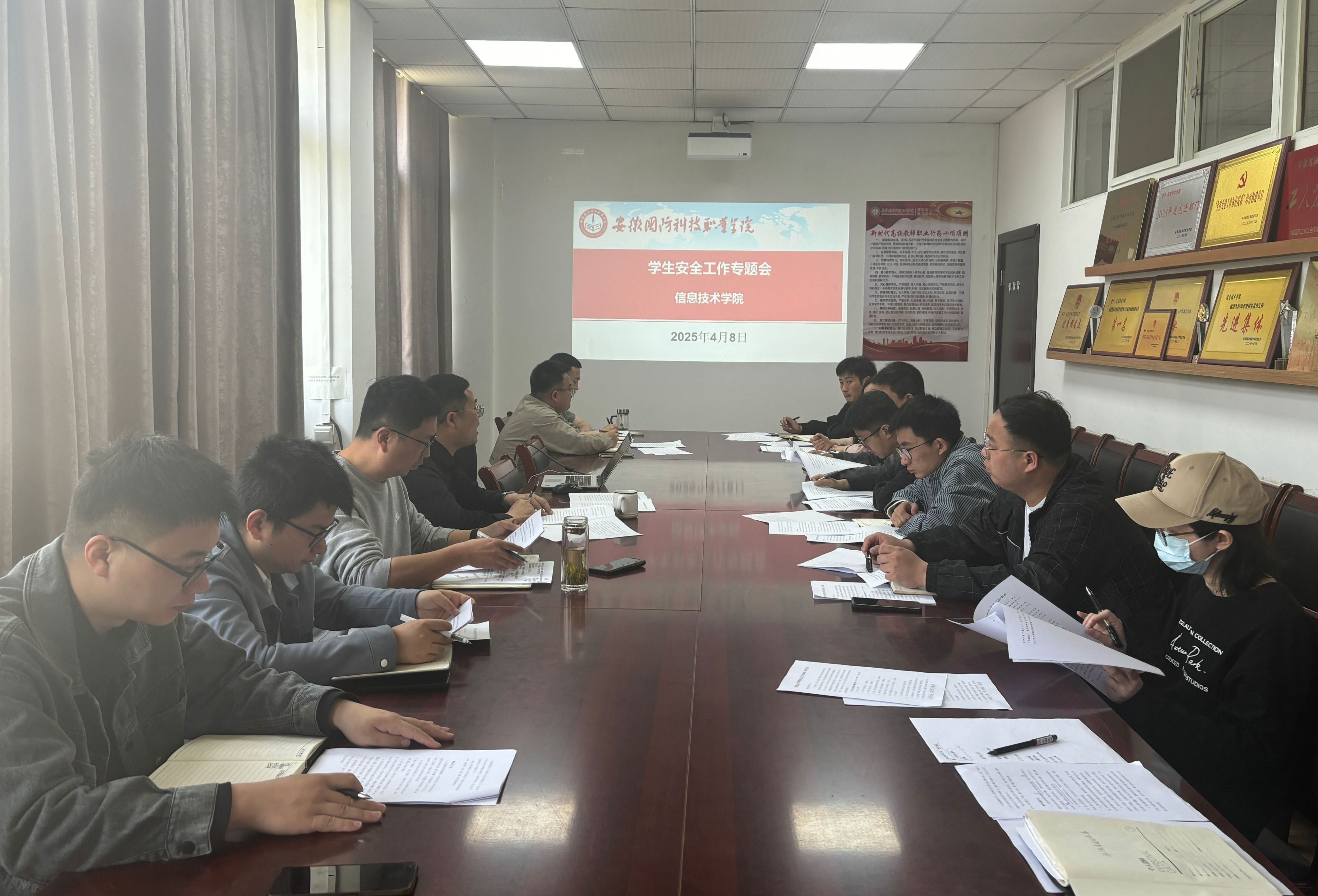 本网讯(信息技术学院 王雪)4月8日上午,信息技术学院在知行楼304会议室召开四月份辅导员工作例会暨安全工作专题会议,会议由学院党总支副书记杜洪宇主持,学院党总支书记王胜及全体在校班专兼职辅导员参加会议。