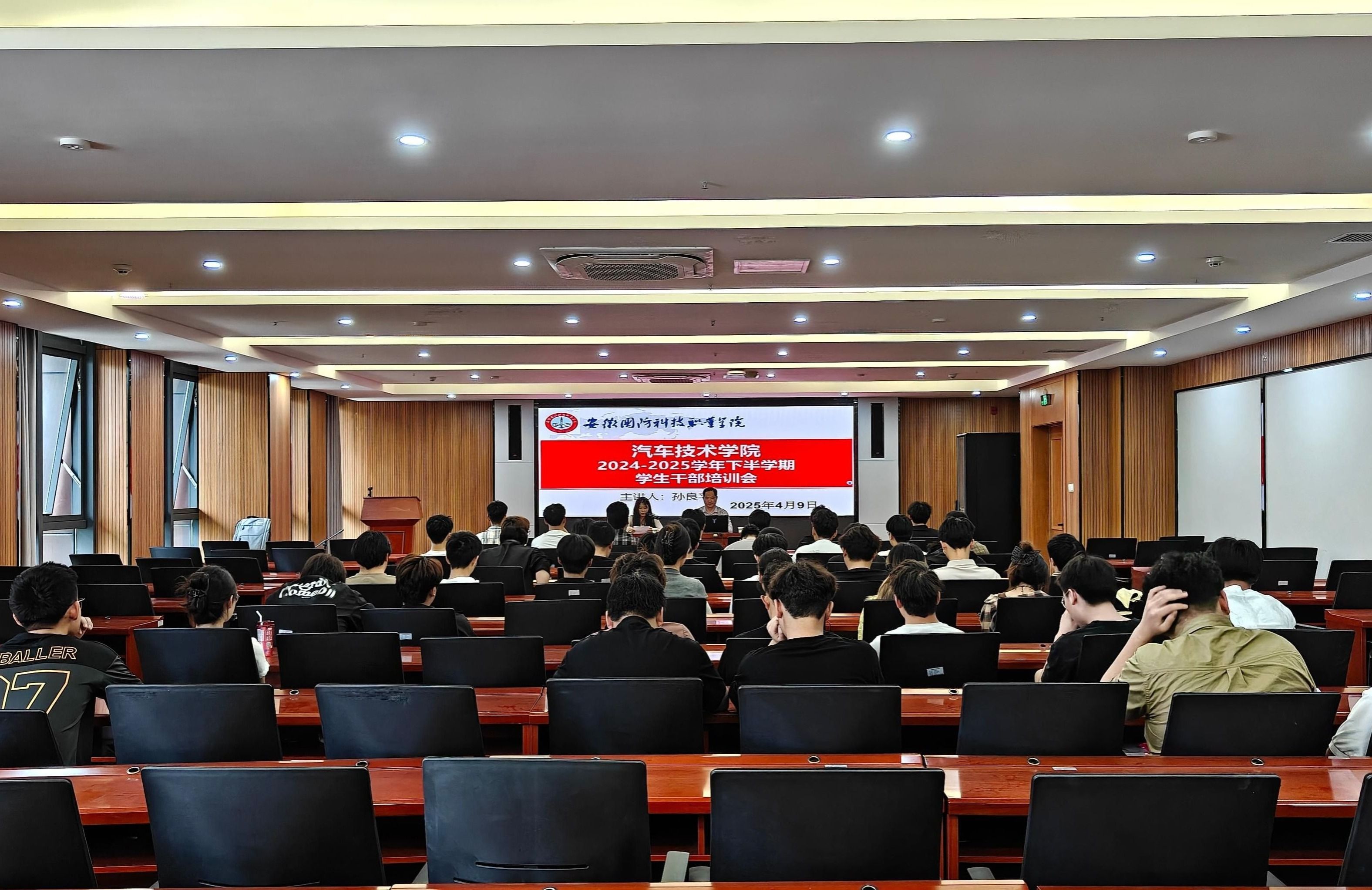 本网讯(汽车技术学院 徐婷婷)为深入学习贯彻全国两会精神,提升学生干部综合素质,增强自我教育、自我管理、自我服务的意识,切实提高学生干部的工作水平和工作效率,4月9日下午,汽车技术学院在产教融合第一报告厅开展“聚焦两会,争做有为青年”主题培训,汽车技术学院党总支书记孙良平为学生干部做培训,院团总支委员、学生会、挂靠社团学生干部及各班级学生干部代表参加培训,会议由学院团总支书记徐婷婷主持。