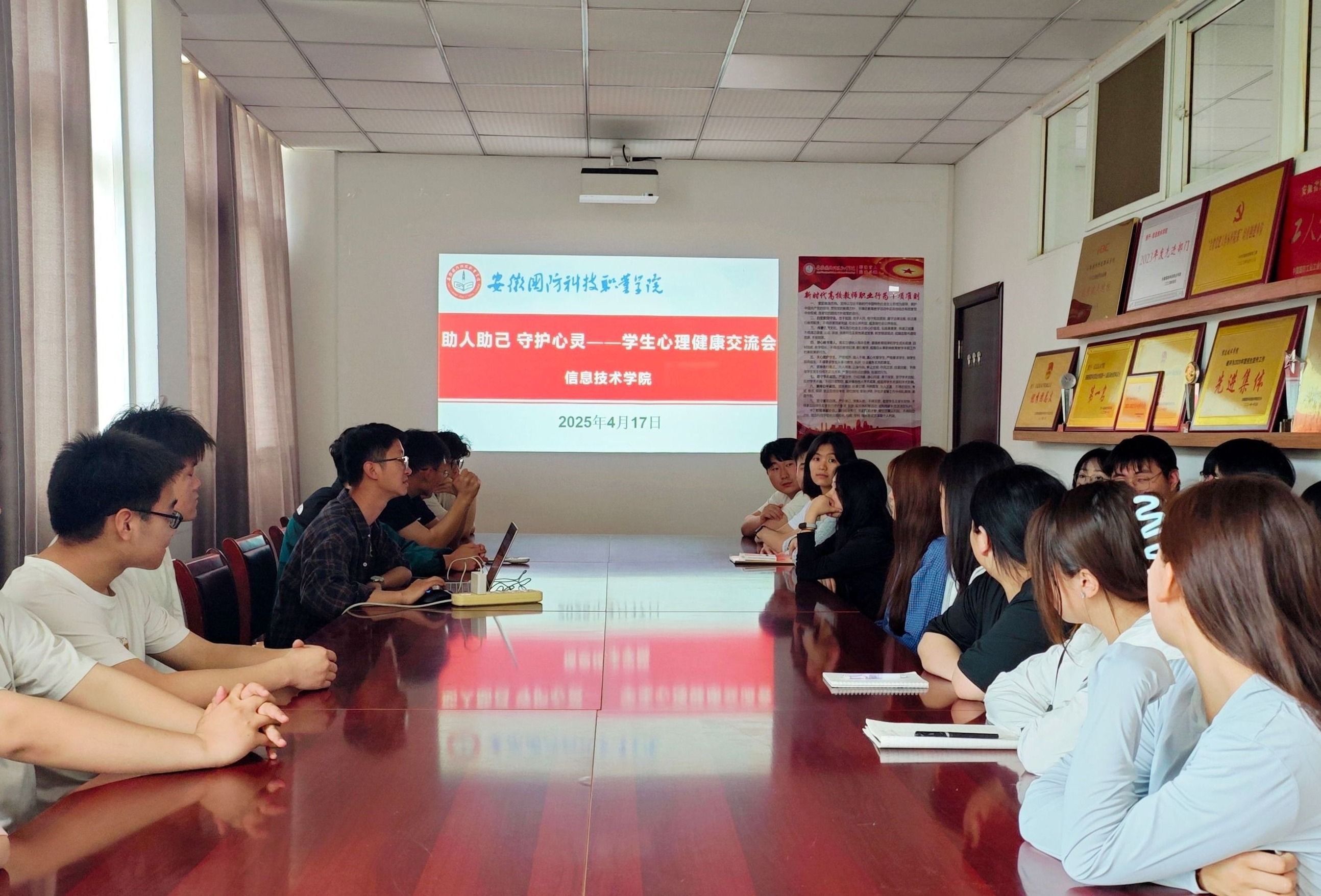 本网讯 为进一步强化学院学生心理健康教育工作实效,提升心理健康支持网格的效能,发挥学生骨干朋辈心理帮扶力量,4月17日中午,信息技术学院在知行楼304会议室开展“助人助己 守护心灵”主题交流会,来自各班级的29名学生干部参加会议,会议由心理辅导员彭思远主持。