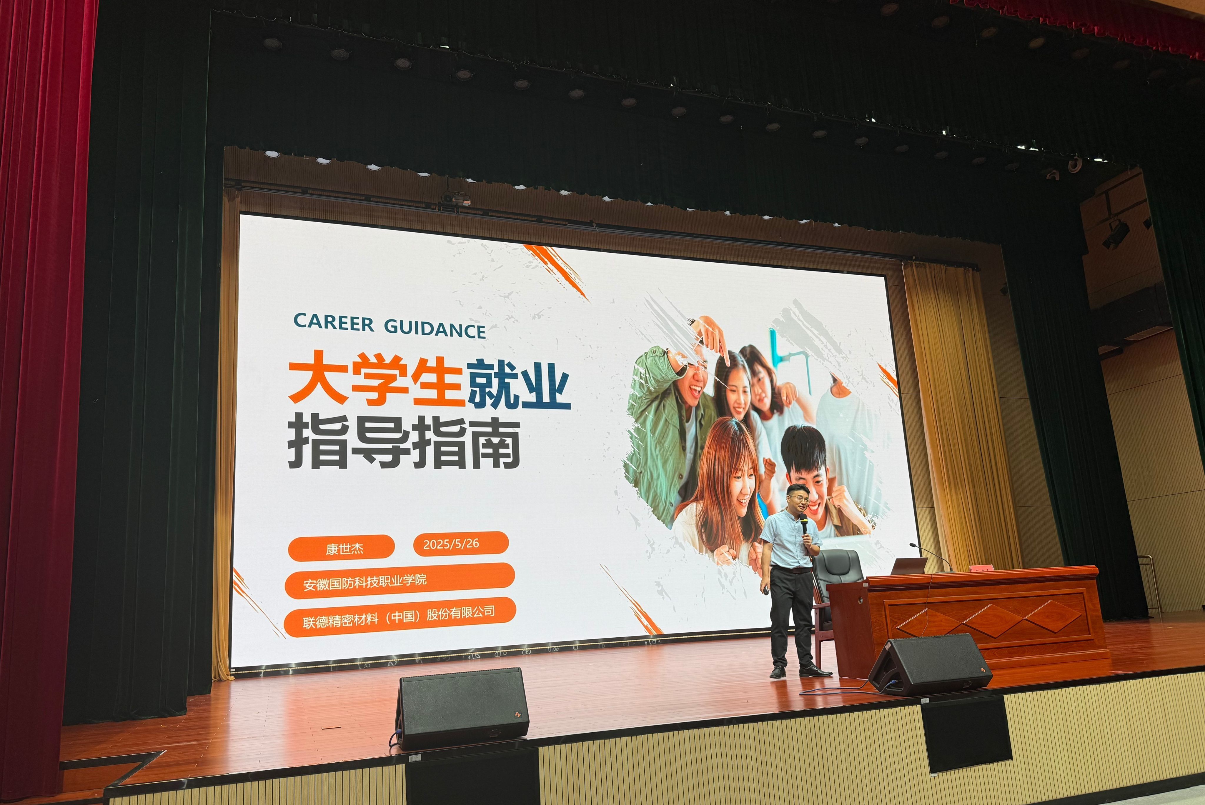 会议特别邀请了联德精密材料(中国)股份有限公司人力资源部部长、万象城官网优秀毕业生康世杰为同学们做就业指导讲座。他系统地从“校园人”到“职场人”的角色转换要点、职业适应期的关键技巧、职业发展路径规划方法、职场转型的注意事项、简历制作的实用技巧五个维度展开讲解。
