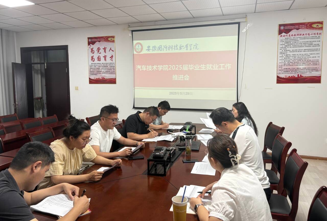 本网讯(汽车技术学院 黄世超)为落实立德树人根本任务,促进2025届毕业生高质量充分就业,5月29日上午,汽车技术学院召开2025届毕业生就业工作推进会。汽车技术学院就业工作领导小组成员、全体毕业班辅导员参加会议,会议由党总支副书记陈梦雅主持。