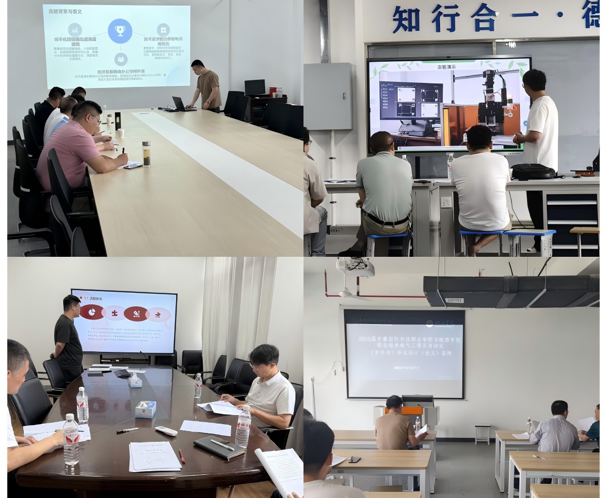 本网讯(电气技术学院 孔军)电气技术学院于5月28日组织开展25届专升本联合培养电气工程及其自动化专业毕业设计(论文)答辩工作。为确保毕业设计论文答辩工作的质量与规范性,学院组织对答辩论文进行了形式审查、评阅及文字复制比查重,为答辩的顺利进行奠定了坚实基础。电气技术学院与皖西学院电气与光电工程学院依据《皖西学院本科毕业设计(论文)管理规定》及《关于对2025届本科毕业设计(论文)复制比的通知》等相关文件要求,共同组建答辩委员会,分7个小组实施答辩工作,圆满完成了59名同学的毕业设计论文答辩工作。