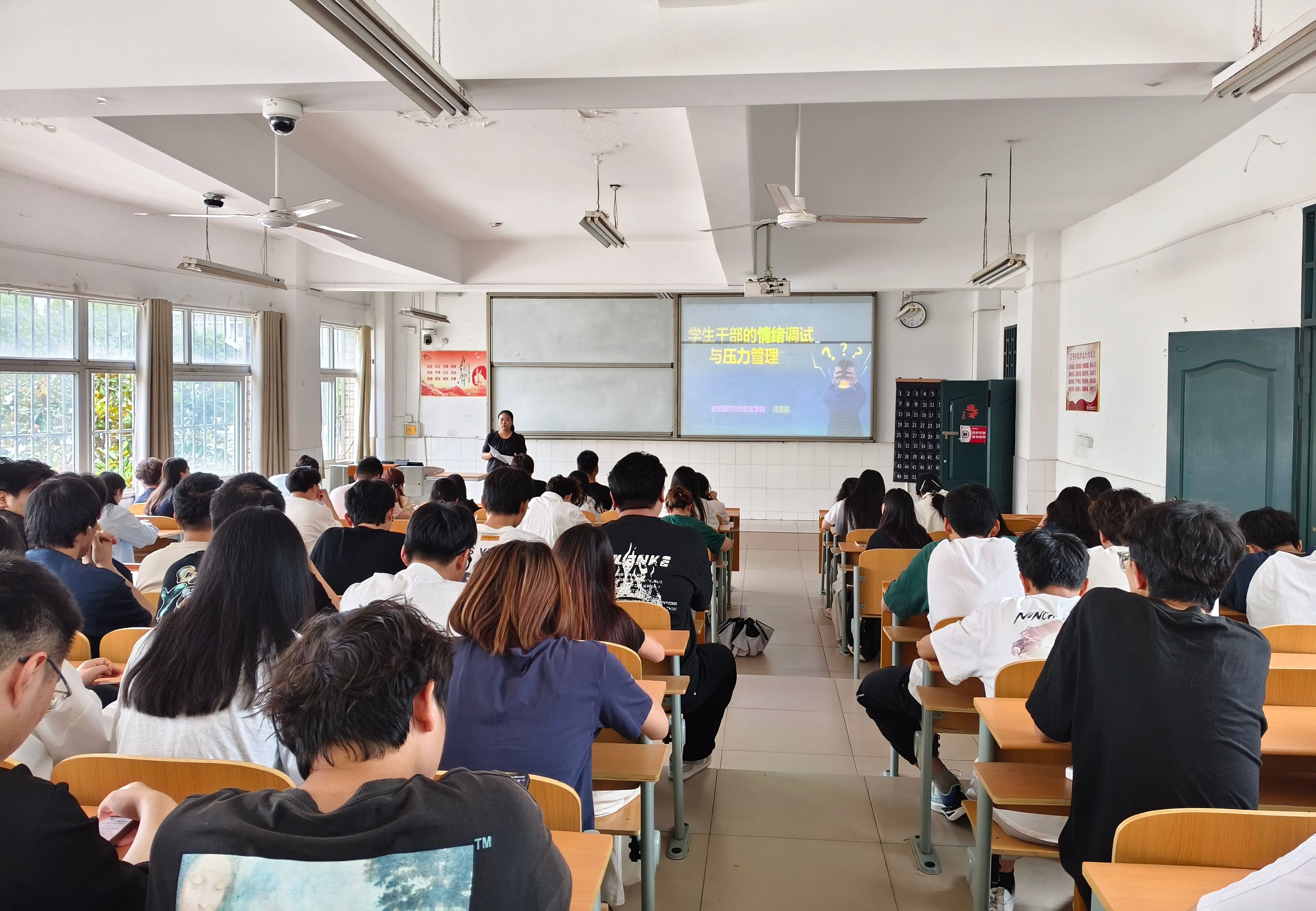 本网讯 为使心理委员学会压力调适与情绪管理,解决生活、工作中的忧虑和困扰,6月12日,学生处心理健康教育中心在2教105教室举办“学生干部的情绪调试与压力管理”主题讲座。学生处心理健康教育中心汪亚男老师主讲,全校心理委员参加了活动。