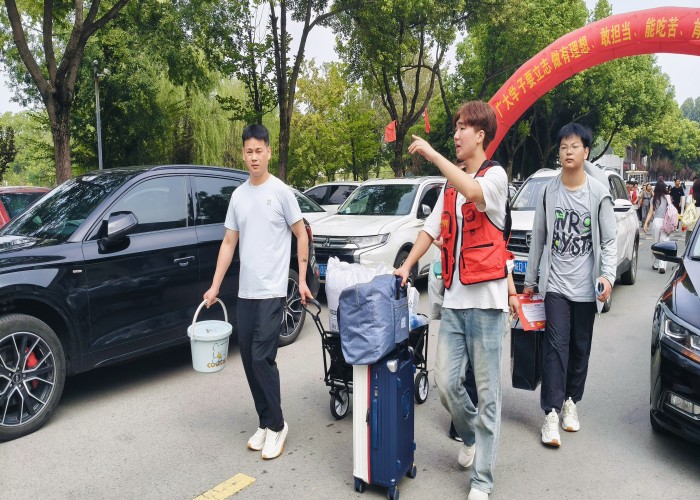 校园里,身着统一“红马甲” 的志愿者们成为了一道亮丽的风景线。他们热情周到地为新生提供从入校到入住的 “一站式” 服务,耐心细致地为前来报到的新同学和家长解答疑问,主动帮忙搬运行李。他们忙碌而有序的身影,让整个迎新现场充满了暖意。学院迎新团队提前行动,为新生们搭建起了特别的防晒设施——“遮阳天幕”,用贴心举措为大家营造了一个温馨、暖心、和谐的迎新环境。