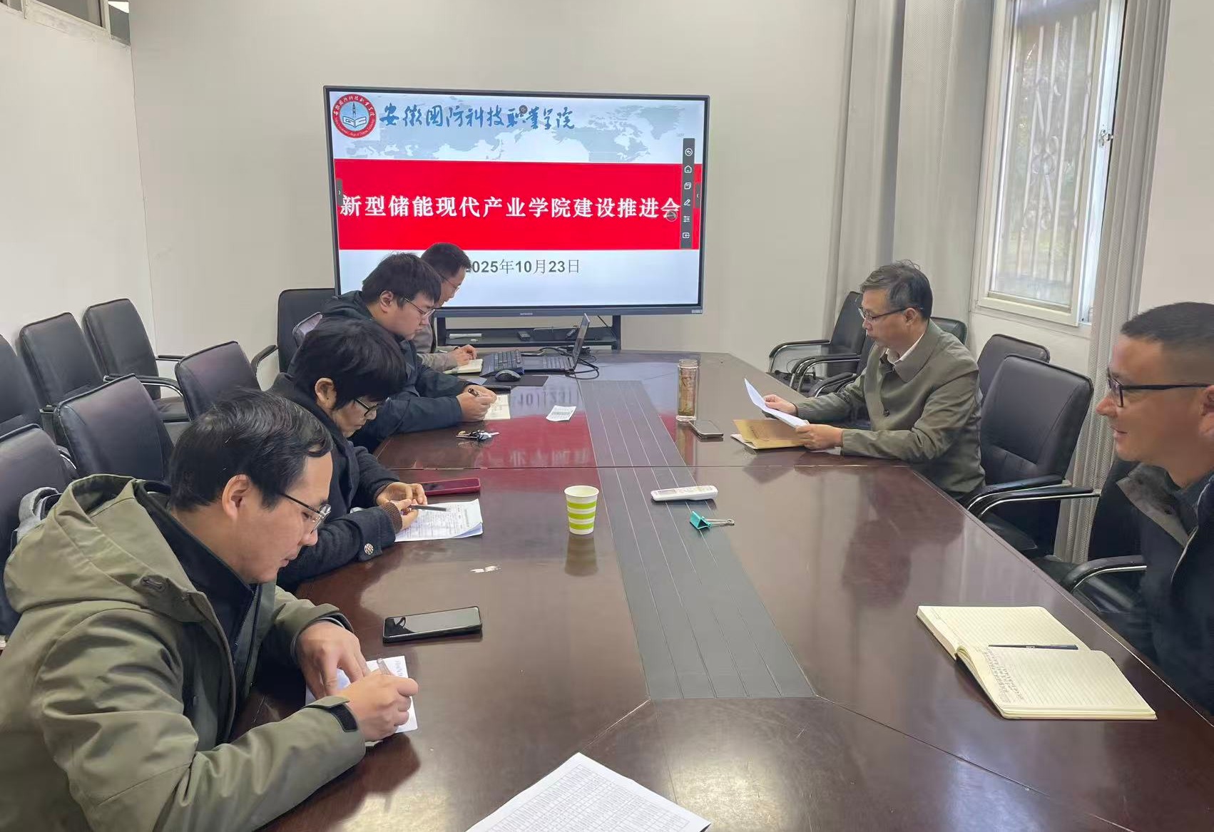 在近期工作布置环节,江治国结合产业学院当前建设进度,从三个维度明确任务:一是加快储能专业实训设备的更新与补充,结合企业岗位需求优化实训项目设计,确保实训教学与产业实践无缝衔接;二是推进与储能行业企业的合作对接,计划12月前完成2-3家区域龙头企业的走访,落实“订单班”培养、企业导师引进等合作事宜;三是启动2025-2026学年储能专业社会培训方案编制,针对企业员工技能提升需求,开发模块化培训课程。