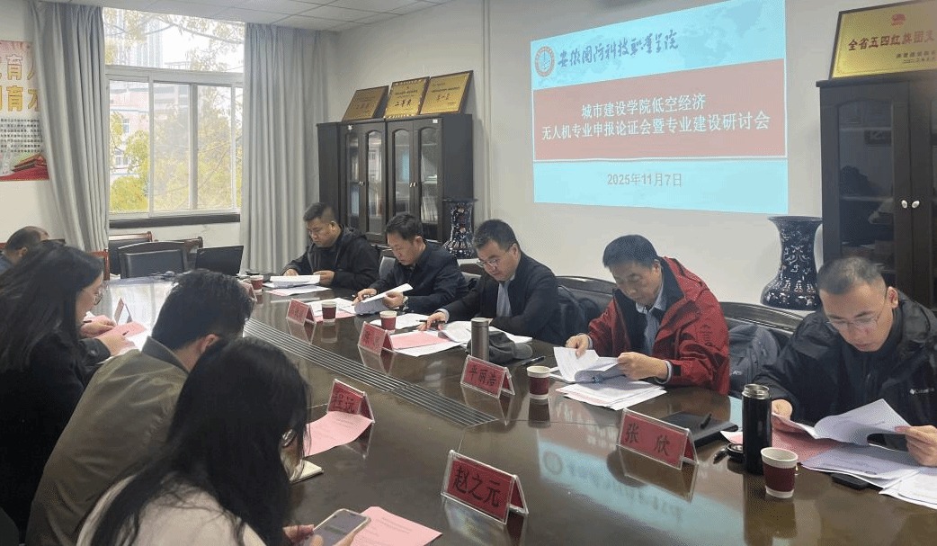 本网讯(城市建设学院 高烨)为主动适应低空经济与智能无人系统产业发展趋势,科学规划专业建设,城市建设学院于11月7日在知行楼319会议室召开低空经济相关专业申报论证会,国际先进技术应用推进中心(合肥)主任助理、低空事业部部长陈思,中电科芜湖钻石飞机制造有限公司高级顾问平丽浩,合肥智能无人系统研究院院长石敏超,六安市勘测规划设计研究院有限公司副总经理张欣,以及安徽应流航空科技有限公司总工程师祁正岩参与论证。会议由城市建设学院院长王红林主持,学院领导、教研室主任、专业负责人及智能建造教师团队共同参加。