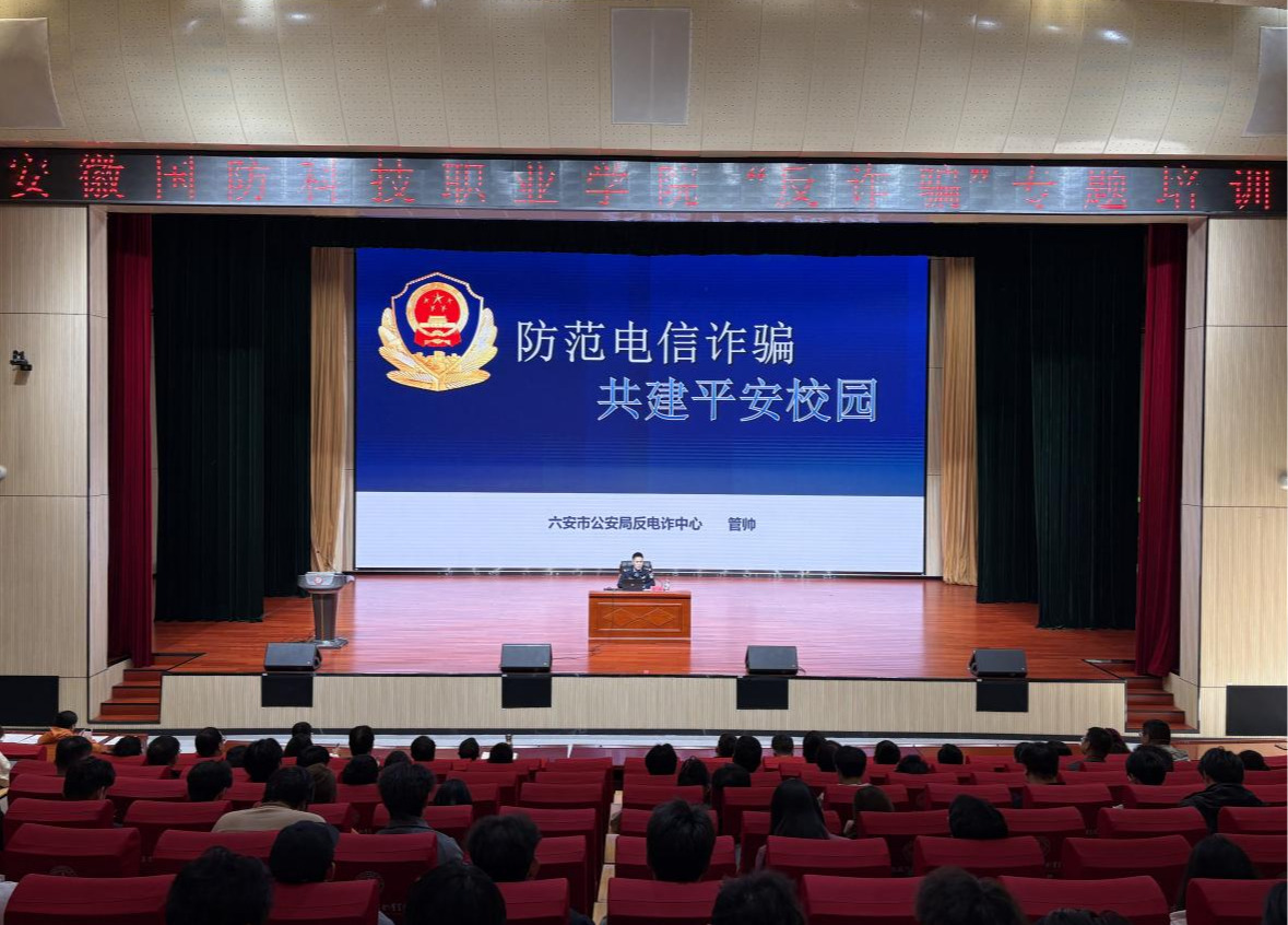 本网讯(学生处 孙洋洋)为切实提升学生的安全防范意识,有效预防和减少电信网络诈骗案件的发生,11月14日下午,万象城官网特邀六安市公安局反电诈中心副大队长管帅在产教融合中心多功能报告厅为广大师生带来了一场题为“防范电信诈骗,共建平安校园”的专题知识讲座。各学院党总支书记、副书记、团总支书记、专兼职辅导员和学生干部参加讲座。本次讲座由学生处、安全保卫处处长孙武主持。