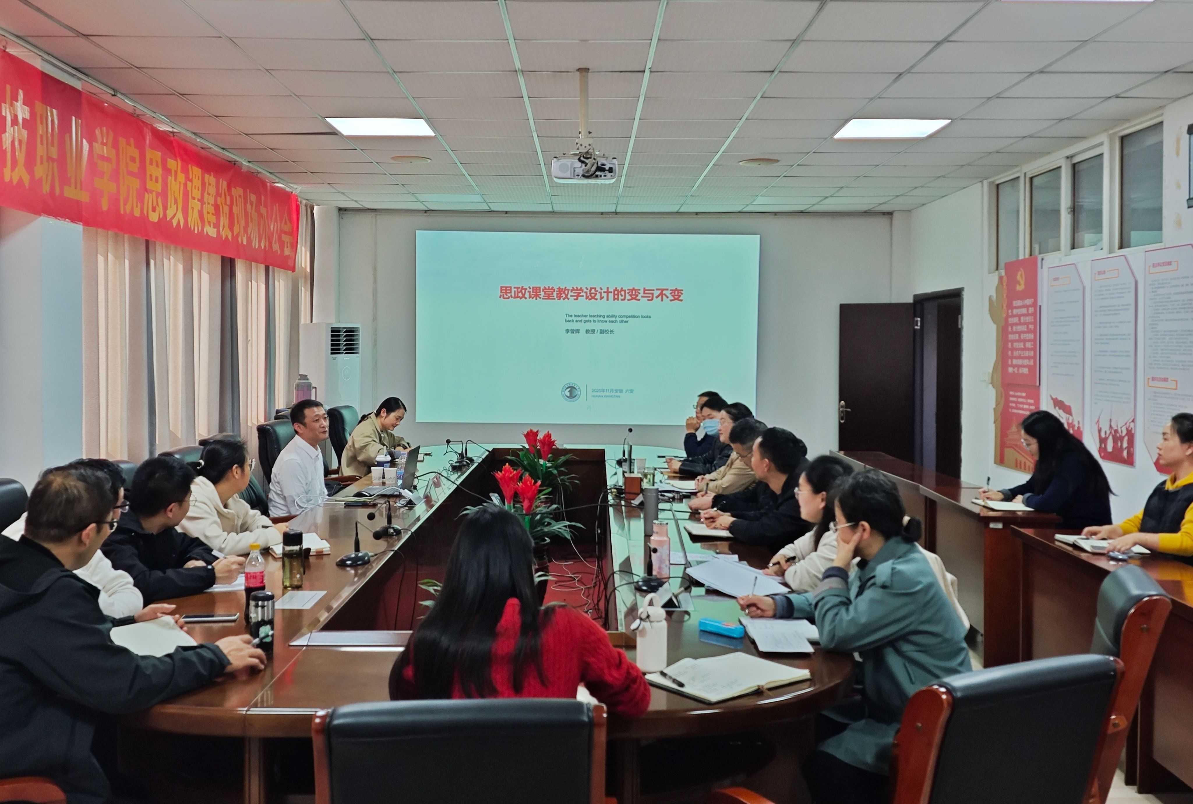 本网讯(马克思主义学院 王成名)为深入贯彻落实立德树人根本任务,持续提升思想政治理论课的教学质量与育人水平,11月14日下午,马克思主义学院在知行楼403会议室举办了教科研能力提升学术讲座,讲座特邀湖南城建职业技术学院副校长李曾辉教授主讲,校党委委员、马克思主义学院院长陈思主持,全体思政课教师参加。