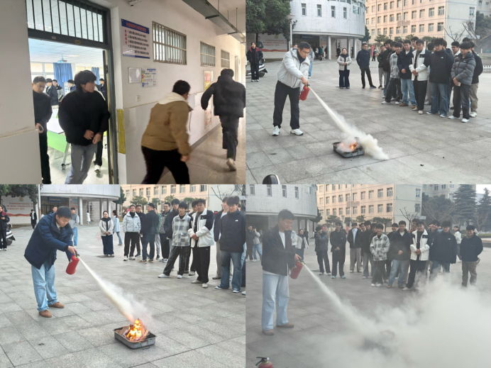 紧接着,随着演练总指挥下达疏散的命令,学生们在老师的组织下有序地开展消防应急疏散演练。本次演练模拟实验实训室发生火情的紧急情况,在接到“火警”报告后,立即启动应急预案,第一时间组织力量按照预定方案,迅速而有序地进行紧急疏散。疏散至安全区域后,实训指导老师现场演示了干粉灭火器的正确使用方法,并邀请部分教师和学生亲自参与操作,整个演练过程紧张有序,达到了预期效果。