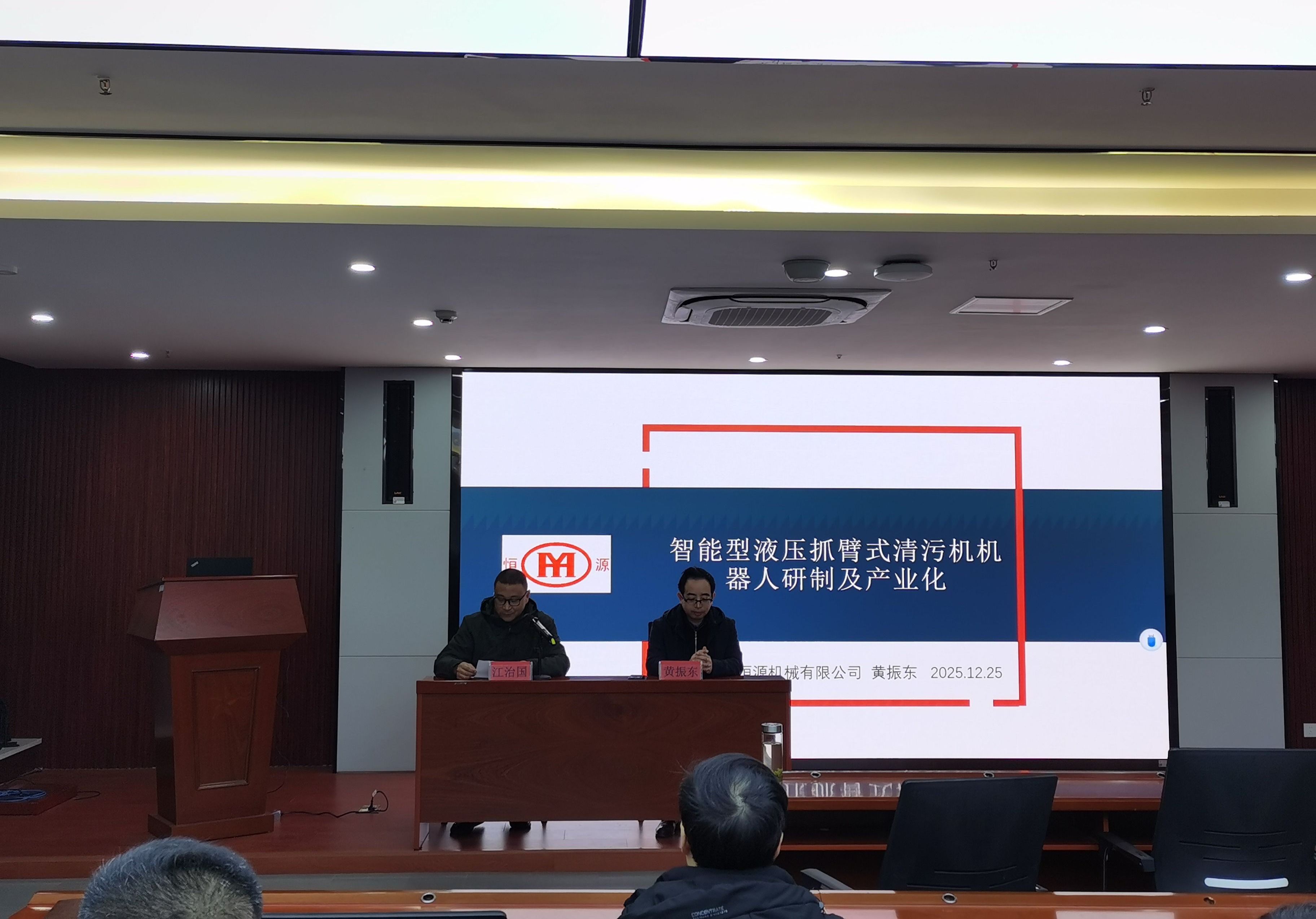 讲座中,黄振东结合自身多年工程实践经验,从企业发展、技术创新、产业应用、产学研合作四大维度展开分享。作为国家级高新技术企业、国家专精特新“小巨人”企业,六安恒源机械深耕水工机械领域,拥有6个省级研发平台和98项国家授权专利,主导产品在安徽省市场占有率连续多年超 75%。其研发的智能型液压抓臂式清污机器人作为国内首创机型,融合电液位置伺服系统、轨迹在线修正等多项前沿技术,单爪最大清污能力达4000公斤,每小时可清理垃圾100多吨,效率较传统设备提升5-6倍,末端轨迹精度仅3mm,整体技术达到国际领先水平。黄振东还详细介绍了产品在引江济淮、淮水北调等国家重点工程的应用成果,以及与合肥工业大学、芜湖哈特机器人研究院的产学研合作经验,展现了“校企协同、创新赋能”的发展路径。